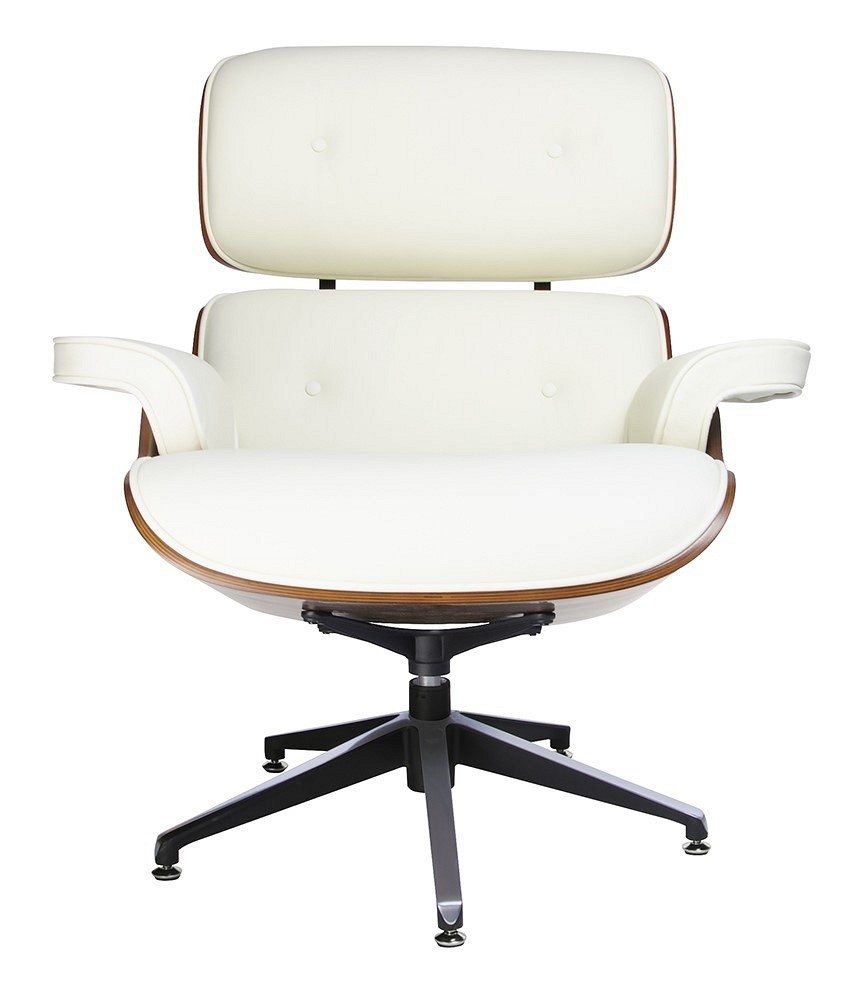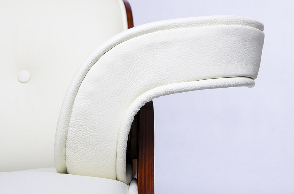 Fotel LOUNGE biały z orzechowym drewnem. Siedzisko, oparcie oraz podłokietniki tapicerowane są skórą naturalną w kolorze białym. Korpus fotela został wykonany z giętego na ciepło drewna w kolorze jasny orzech. Podstawa oraz elementy metalowe wykonane zostały ze stali, malowanej proszkowo na kolor czarny matowy. Dla podkreślenia elegancji, podstawa oraz łączenia oparcia są dodatkowo spolerowane na wierzchniej stronie. Fotel jest obrotowy. Lounge doskonale sprawdzi się w salonie lub gabinecie. Dzięki temu że nasz fotel wyposażony jest w wyższą podstawę, idealnie będzie nadawał się do codziennej pracy. Do fotela polecamy podnóżek w takiej samej kolorystyce. Waga netto: 22 kg Waga z opakowaniem: 25 kg Maksymalna ilość szt. w opakowaniu: 1 Sposób wysyłki: Paleta Wymiary opakowania: 88 cm x 64 cm x 84/37cm Produkt do samodzielnego montażu: Tak