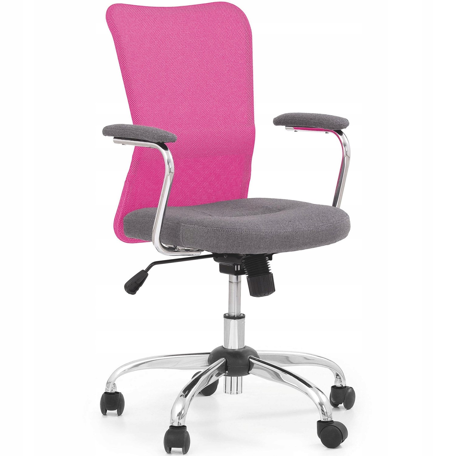 ANDY to propozycja wygodnego, młodzieżowego krzesła obrotowego. Obicie fotela wykonane jest z tkaniny i siatki. Elementem wyróżniającym model od innych jest dwukolorowy wariant umożliwiający łatwe dopasowanie go do pomieszczenia.