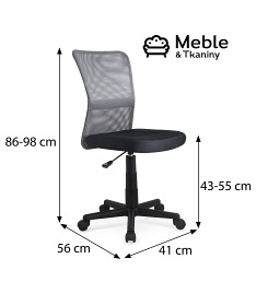 Fotel młodzieżowy DINGO to ciekawe rozwiązanie do pokoju nastolatków. Oparcie wykonane zostało z siatki dostępnej w kilku kolorach, a siedzisko obszyte zostało tkaniną membranową. Sam fotel wyposażony został w mechanizm podstawowy, który umożliwia regulację wysokości siedziska dostosowaną do potrzeb.