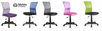 Fotel młodzieżowy DINGO to ciekawe rozwiązanie do pokoju nastolatków. Oparcie wykonane zostało z siatki dostępnej w kilku kolorach, a siedzisko obszyte zostało tkaniną membranową. Sam fotel wyposażony został w mechanizm podstawowy, który umożliwia regulację wysokości siedziska dostosowaną do potrzeb.