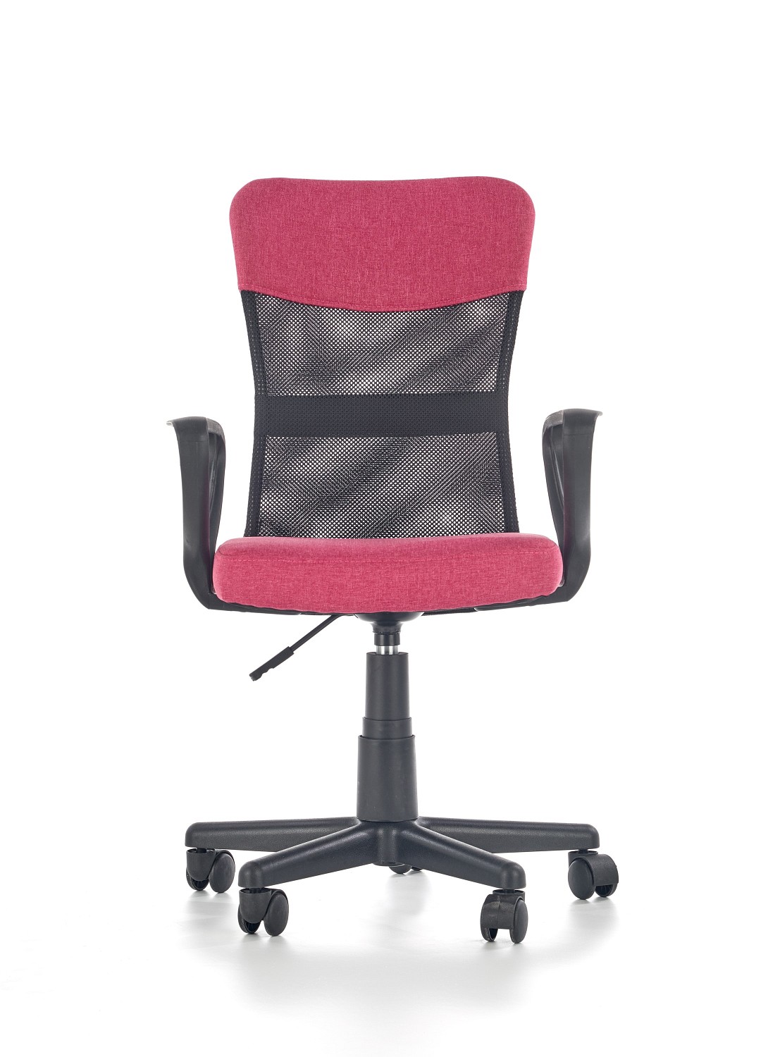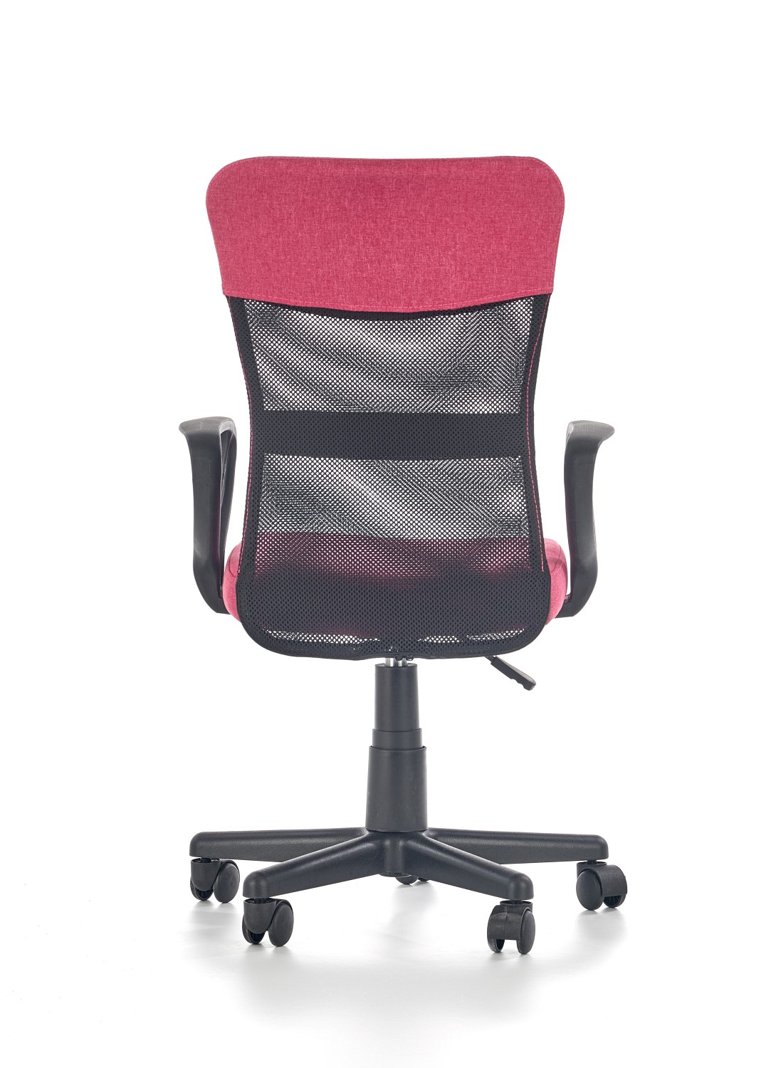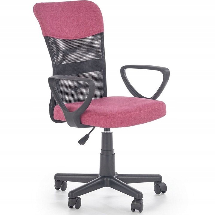 Model Timmy to fotel stworzony z myślą o pokojach młodzieżowych. Posiada lekko wychylone i zaokrąglone oparcie oraz miękkie siedzisko, które razem nadają mu nieprzeciętnego komfortu użytkowania. Timmy obszyty został miękką, kolorową tkaniną połączoną z przewiewną siatką. Ponadto wyposażono go w kółka pozwalające na wygodne przemieszczanie oraz w mechanizm podstawowy służący do regulacji wysokości siedziska, dzięki czemu możemy je dopasować do każdego biurka. Model dostępny w trzech wersjach kolorystycznych: turkusowo-czarnym, popielato-czarnym i różowo-czarnym.