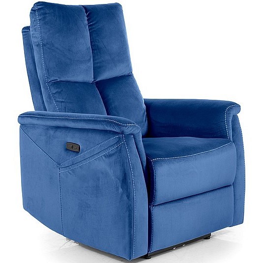Fotel Neptun Velvet Granatowy Bluvel 86 to nowoczesny, wygodny i stylowy fotel rozkładany, wykonany z wysokiej jakości aksamitu. Idealnie sprawdzi się jako mebel do salonu lub sypialni. Fotel posiada funkcję masażu, która pozwoli Ci na relaks i odprężenie po całym dniuSterowanie rozkładania fotelu jest za pomocą panelu na prawym boku fotela. Panel wyposażony dodatkowo w podświetlany port USB. Funkcje masażu jest regulowane za pomocą przewodowego pilota, w opcji: