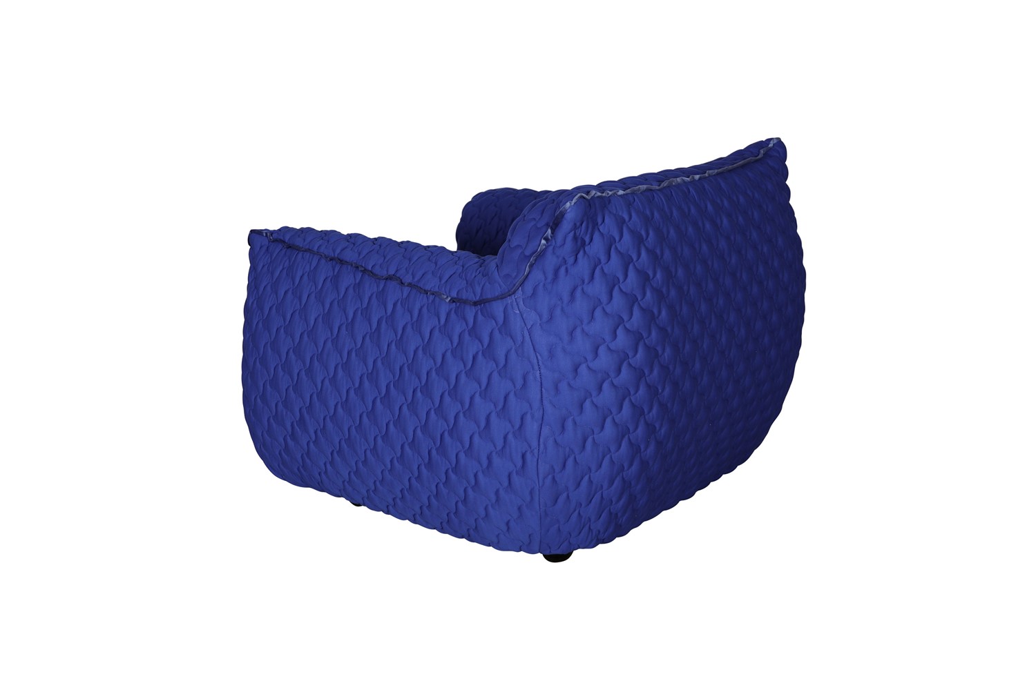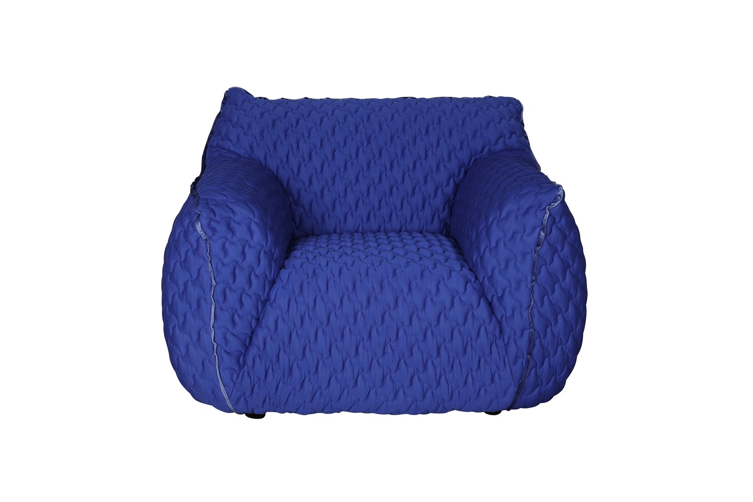 Nowoczesny, duży fotel o obłym kształcie emanuje elegancją i wygodą. Jego elastyczna tkanina w delikatnym odcieniu chabrowego, ozdobiona pikowaniami na kształt czteroramiennych gwiazd, nadaje mu wyjątkowego charakteru. To niezwykłe połączenie prostej formy z miękkim wypełnieniem z gąbki sprawia, że fotel ten staje się nie tylko miejscem do wypoczynku, ale także designerskim akcentem w każdym pomieszczeniu. Oryginalna struktura materiału dodaje mu subtelnej lekkości, a zarazem zapewnia wyjątkową trwałość i komfort użytkowania. Niech ten fotel stanie się centralnym punktem Twojego wnętrza, zapewniając nie tylko relaks, ale także estetyczne doznania.