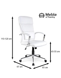 Czy fotel gabinetowy może oddawać naturę osobowości kobiety? Aurelius przyciąga wzrok swoją klasą, lekkością oraz gustowną ozdobnością. Do wysokiego, pokrytego eco skórą oparcia, przymocowano trzy poduszki zapewniające wyjątkową wygodę użytkowania. Metalowe podłokietniki pokryto miękką nawierzchnią, również z białej eco skóry, a całość wyposażono w mechanizm TILT, który zapewnia płynną regulację wysokości, swobodne kołysanie się, obracanie oraz blokadę oparcia podczas użytkowania go w pozycji pionowej. Do podstawy krzesła zamocowany został zestaw kółek przeznaczony do dywanów. Dodatkowo w naszej ofercie posiadamy również kółka kauczukowe idealne do powierzchni twardych np. paneli.