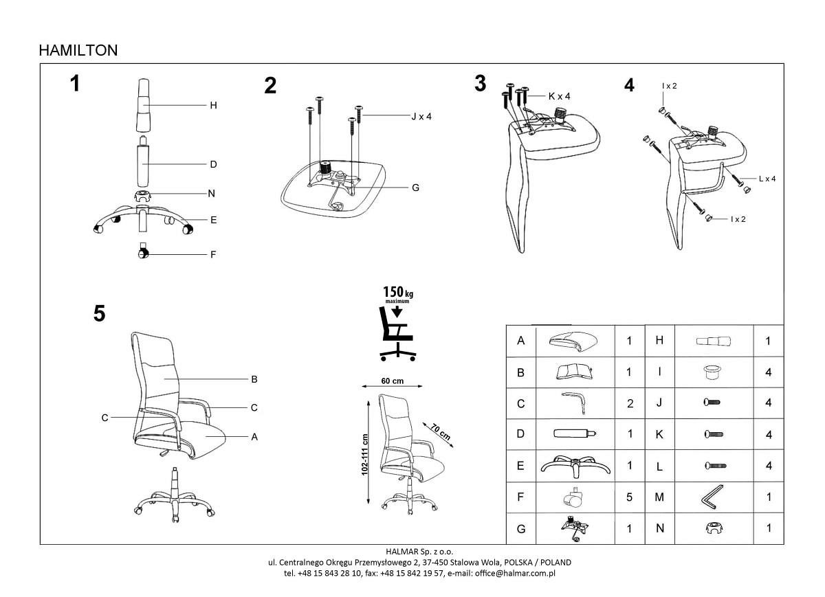 Kształt fotelu Hamilton dedykowany jest osobom, które spędzają wiele godzin w pozycji siedzącej. Jest nad wyraz wygodny, a przy tym minimalistyczny. Wykonany został z eco skóry i wyposażony w mechanizm TILT, który zapewnia płynną regulację wysokości, swobodne kołysanie się, obracanie oraz blokadę oparcia podczas użytkowania go w pozycji pionowej. Do jego podstawy zamocowany został zestaw kółek przeznaczony do dywanów. W naszej ofercie posiadamy też kółka kauczukowe dostosowane do powierzchni twardych np. paneli.