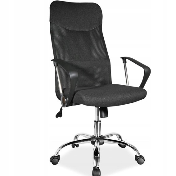 Fotel obrotowy Q-025 to klasyczny model z wysokim, zapewniającym komfort pracy oparciem. Doskonale sprawdza się w biurach lub w towarzystwie domowego biurka. Jego nowoczesny design osiągnięto poprzez obicie siatką w połączeniu z tkaniną w dwóch kolorach do wyboru: czarnym bądź białym. O ergonomię jego użytkowania dba mechanizm TILT pozwalający na wychylanie i obracanie fotela.