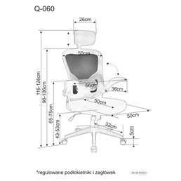 Fotel obrotowy Q-060 w kolorze czarnym to elegancki i ergonomiczny wybór do każdego biura czy pokoju ucznia. Wykonany z przyjemnej w dotyku tkaniny i siatki, zapewnia komfort oraz odpowiednią cyrkulację powietrza. Posiada mechanizm TILT, który umożliwia bujanie się, co jest idealne podczas długich godzin pracy. Regulowany zagłówek oraz odcinek lędźwiowy gwarantują odpowiednie wsparcie dla kręgosłupa. Fotel wyposażony jest również w ruchome podłokietniki, które dodatkowo zwiększają komfort użytkowania. Maksymalne obciążenie wynosi 120 kg. Uniwersalna kolorystyka i funkcjonalny design sprawiają, że fotel Q-060 jest ponadczasowym i praktycznym dodatkiem do każdego wnętrza.