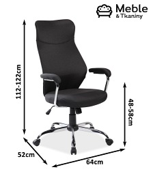 Fotel obrotowy Q-319 to klasyczny model z wysokim, zapewniającym komfort pracy oparciem. Doskonale sprawdza się w biurach lub w towarzystwie domowego biurka. Jego nowoczesny design osiągnięto poprzez obicie tkaniną i charakterystyczne wygięcie oparcia. O ergonomię jego użytkowania dba mechanizm TILT pozwalający na wychylanie i obracanie fotela. Model dostępny w dwóch kolorach do wyboru: czarnym i szarym.