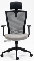 Fotel obrotowy ten to doskonałe połączenie wygody, funkcjonalności i nowoczesnego designu. Jego siedzisko i oparcie wykonane są z wysokiej jakości tkaniny i siatki w świeżym kolorze szarym, co nadaje wnętrzu energii i natury. Czarne elementy, takie jak stelaż wykonany z wytrzymałego tworzywa, podkreślają elegancję i nowoczesny charakter fotela.