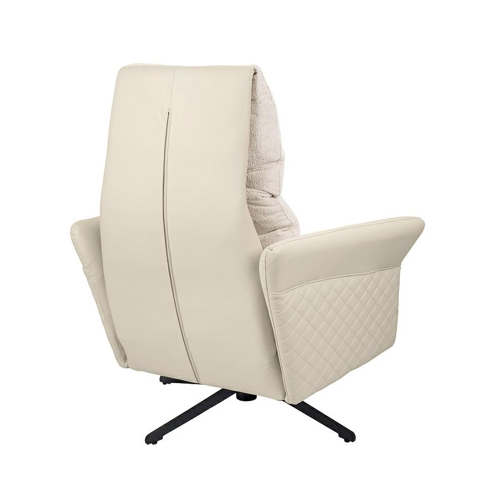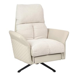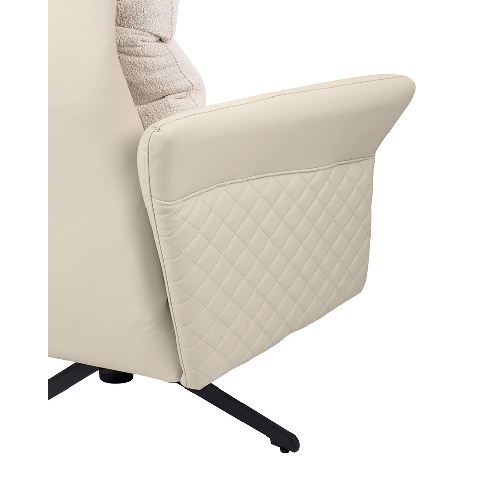 Fotel obrotowy RELAX to kwintesencja ponadczasowego designu połączonego z najwyższym komfortem użytkowania. Ten przytulny fotel został stworzony z myślą o dostarczeniu nie tylko estetyki, ale również relaksu na najwyższym poziomie. Korpus fotela oraz podłokietniki zostały wykończone skórą PU w eleganckim beżowym odcieniu, co nadaje mu subtelny i uniwersalny charakter, doskonale wpisujący się w różne aranżacje wnętrz. Pikowania umieszczone na bokach fotela dodają całości elegancji oraz niesamowitego stylu. Wygodne siedzisko fotela obszyto przyjemną oraz modną w dotyku tkaniną Teddy, co sprawia, że każdy moment spędzony w tym fotelu jest niezwykle komfortowy. Całość została osadzona na stabilnej stalowej podstawie w czarnej kolorystyce. Dodatkowym atutem fotela RELAX jest obrotowy mechanizm, rozkładane oparcie oraz możliwość wysunięcia podnóżka. To wszystko gwarantuje wyjątkowy relaks oraz funkcjonalność, umożliwiając dostosowanie fotela do indywidualnych potrzeb i preferencji użytkownika.