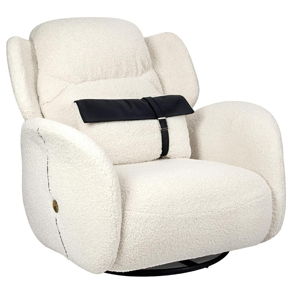 Fotel obrotowy TAPE TEDDY to harmonia oryginalnej stylistyki i najwyższej wygody. Ten niezwykle atrakcyjny fotel wyróżnia się nie tylko wyjątkowym designem, ale także luksusową wygodą, którą zapewnia. Całość fotela TAPE TEDDY została wykończona niezwykle miękką i przyjemną w dotyku tkaniną teddy, co dodaje mu elegancji i subtelności. Obrót fotela został osadzony na solidnej podstawie ze stali w kolorze czarnym. Fotel charakteryzuje się wyprofilowanym kształtem, który nie tylko podkreśla oryginalność, ale także gwarantuje wyjątkowy komfort użytkowania. Dzięki temu możesz całkowicie zrelaksować się, ciesząc się chwilami spędzonymi w tym wyjątkowym meblu. Ciekawym akcentem jest dodatkowa poduszka, która została wzbogacona ozdobnym czarnym paskiem z ekoskóry. To subtelne detale nadają fotelowi TAPE TEDDY jeszcze większego uroku i sprawiają, że staje się on nie tylko miejscem relaksu, ale także designerskim elementem wnętrza.