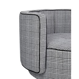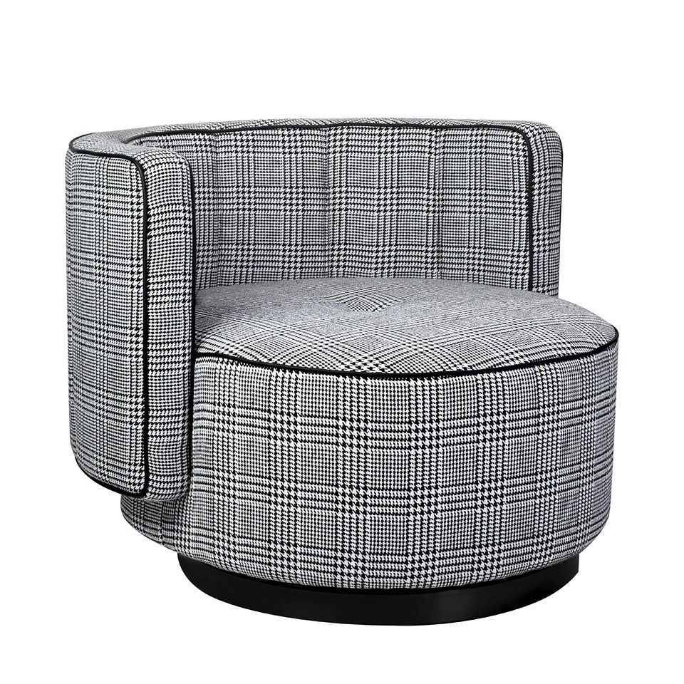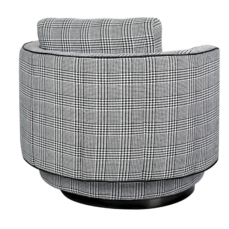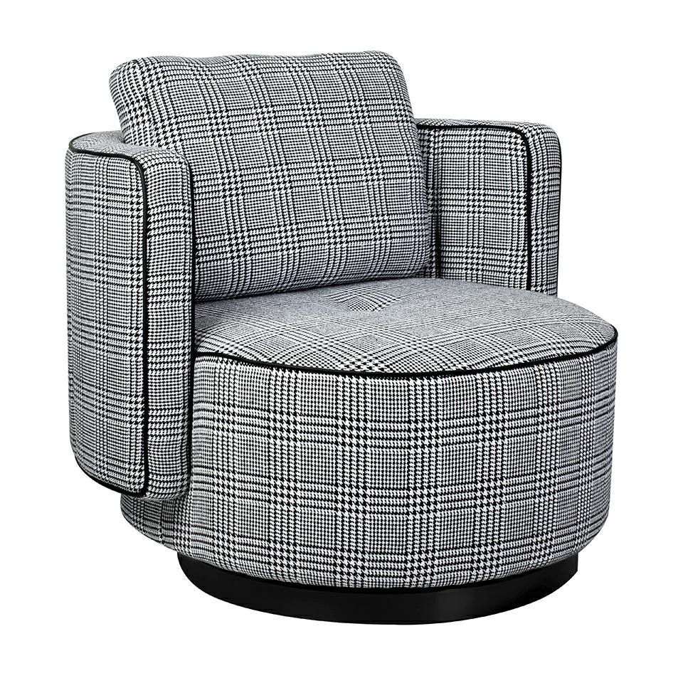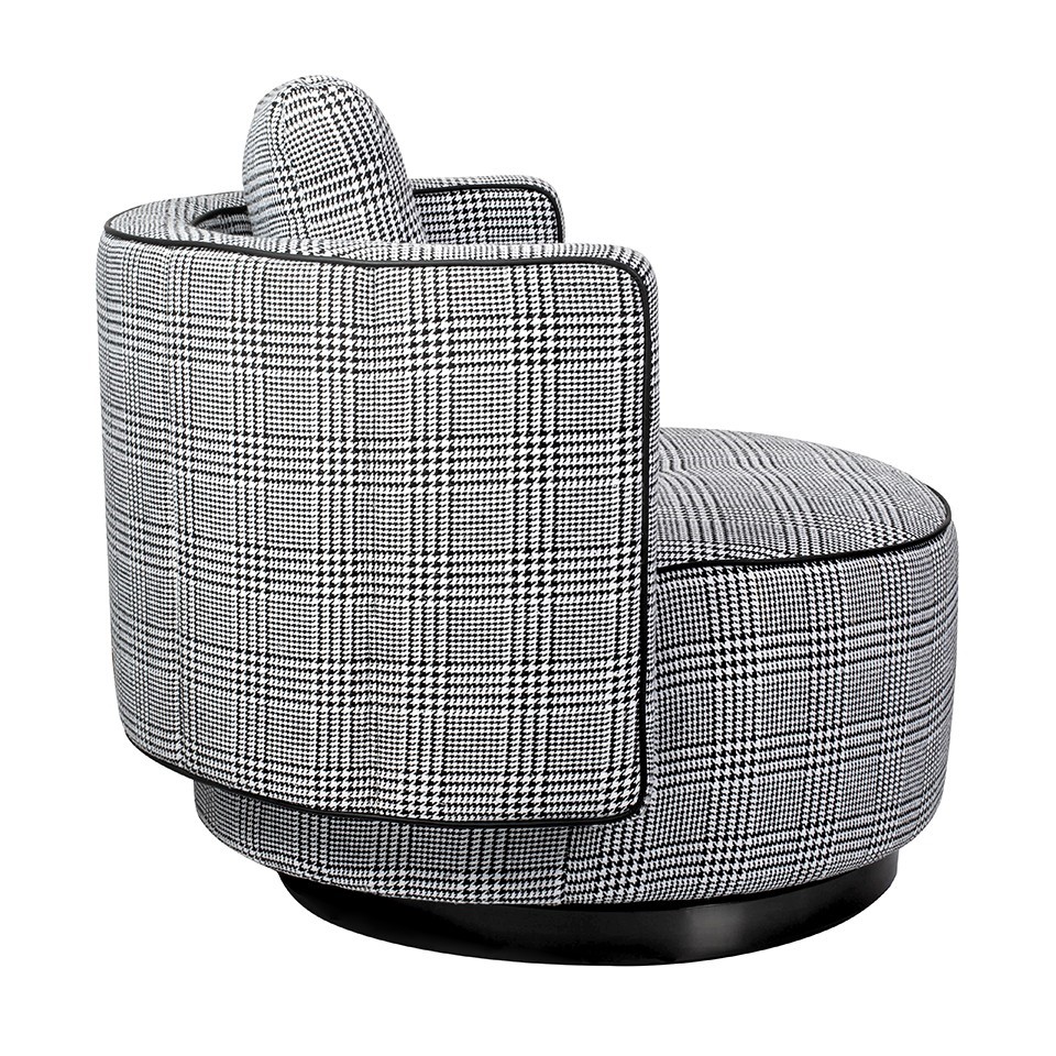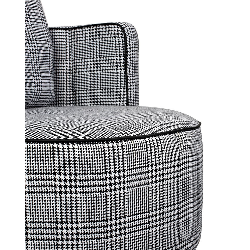 Fotel obrotowy TONDO to wyjątkowy mebel, który łączy nowoczesny design z funkcjonalnością, wnosząc do Twojego wnętrza zarówno styl, jak i komfort użytkowania. Siedzisko oraz poduszka fotela zostały starannie obszyte piękną tkaniną w biało-czarną pepitkę, co nadaje mu nie tylko charakterystyczny wygląd, ale także czyni go designerskim akcentem w pomieszczeniu. Kombinacja kolorów i wzoru pepitki sprawia, że fotel TONDO staje się nie tylko miejscem do wypoczynku, ale także estetycznym elementem dekoracyjnym. Fotel posiada obrotową podstawę wykonaną z trwałej stali nierdzewnej w eleganckim czarnym kolorze. Ta solidna konstrukcja nie tylko nadaje meblowi nowoczesny wygląd, ale także zapewnia stabilność i trwałość. Jednak to nie tylko wygląd czyni fotel TONDO wyjątkowym. Jego ergonomiczny kształt i komfortowe siedzisko sprawiają, że jest to idealne miejsce do relaksu.