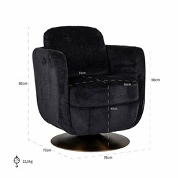 Fotel obrotowy TURNER to elegancki i wygodny mebel, który doskonale sprawdzi się w biurze, salonie lub gabinecie. Jego czarny kolor harmonijnie komponuje się z różnymi stylami wnętrzarskimi, dodając im wyrafinowanego charakteru. Fotel został wykonany z wysokiej jakości materiałów, które gwarantują trwałość i wygodę użytkowania. Tapicerka z tkaniny szenilowej jest przyjemna w dotyku i odporna na zabrudzenia, co ułatwia utrzymanie mebla w czystości. Regulowane oparcie oraz podłokietniki pozwalają dostosować fotel do indywidualnych preferencji i zapewniają optymalne wsparcie dla kręgosłupa oraz ramion. Wygodne siedzisko zastosowane w fotelu zapewnia komfort nawet podczas długotrwałego siedzenia. Fotel wyposażony jest w mechanizm obrotowy, który umożliwiałatwe i płynne poruszanie się. Podstawa z pięcioramiennym krzyżakiem zrobionym z wytrzymałego metalu zapewnia stabilność i bezpieczeństwo użytkowania.