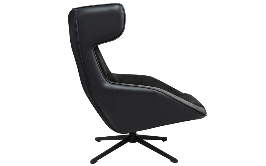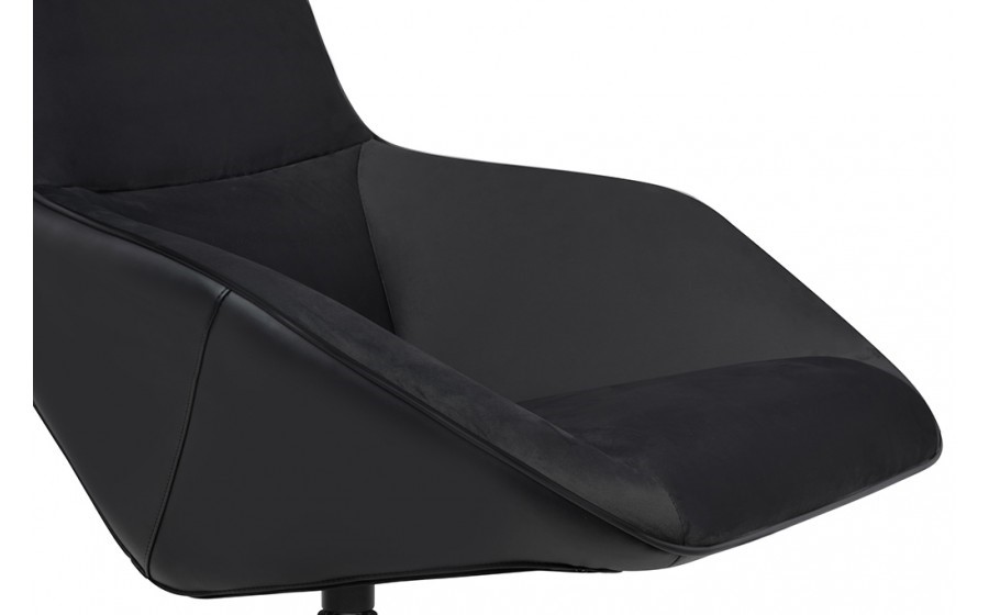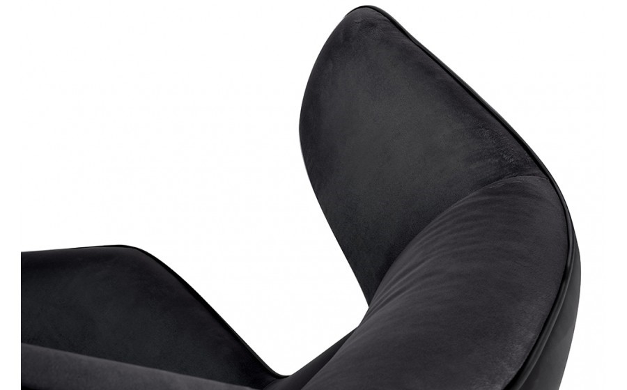 Fotel obrotowy VITA VELVET to doskonałe połączenie elegancji, komfortu i nowoczesnego designu. Jego miękkie siedzisko, tapicerowane wysokiej jakości welurową tkaniną w czarnym kolorze, oferuje nie tylko przyjemne w dotyku doświadczenie, ale również dodaje wnętrzu subtelnej luksusowej estetyki. Zewnętrzną warstwę fotela pokrywa czarna ekoskóra, ozdobiona dekoracyjnymi suwakami. Ta harmonijna kombinacja materiałów tworzy efektowny kontrast, przyciągając wzrok i podkreślając wyjątkowość mebla. Fotel wyposażony jest w solidną, obrotową podstawę wykonaną z matowej czarnej stali, co nadaje mu stabilności i trwałości. Konstrukcja fotela została zaprojektowana tak, aby zapewnić optymalny komfort podczas wypoczynku, sprawiając, że każda chwila spędzona na nim staje się relaksem dla ciała i umysłu.