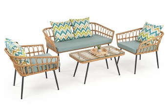 - Uniwersalność i funkcjonalność – mebel tarasowy z tej serii można wykorzystać zarówno na zewnątrz, jak i wewnątrz domu. Dzięki temu latem można stworzyć piękne i urokliwe miejsce na tarasie, a zimą dodać nieco ciepła i energii do salonu.