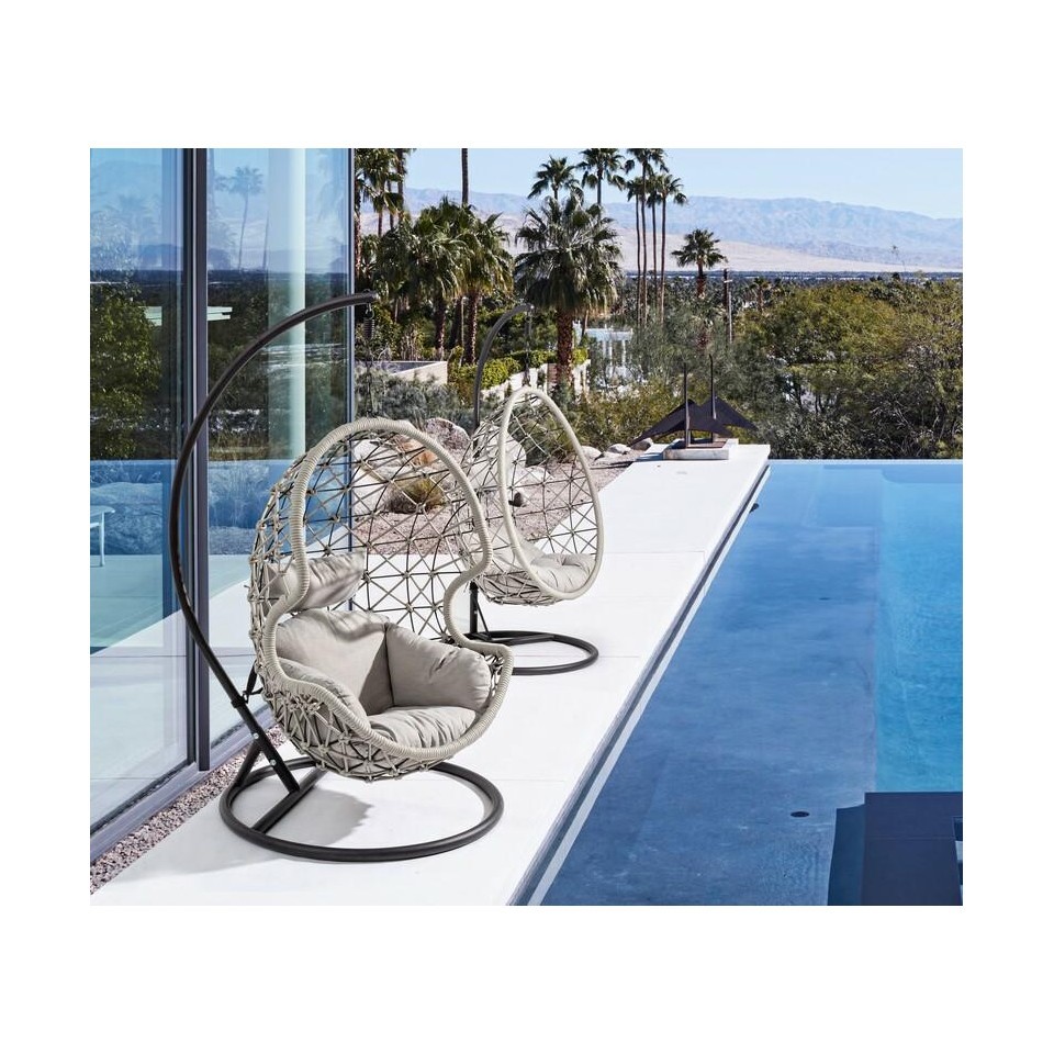 Fotel wiszący Kelly to idealne miejsce do wypoczynku w ogrodzie, na tarasie lub balkonie. Otulająca konstrukcja sprzyja relaksowi i pozwala na chwilę wytchnienia na świeżym powietrzu. Stabilna forma zapewnia bezpieczeństwo, a nowoczesny design sprawia, że fotel pełni również funkcję dekoracyjną. To doskonały wybór dla osób ceniących komfort i styl.