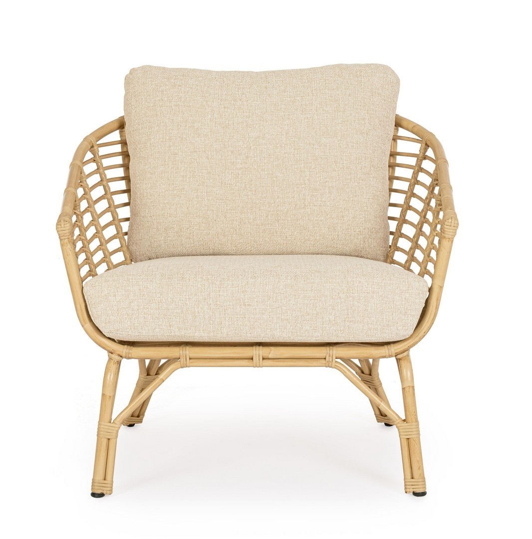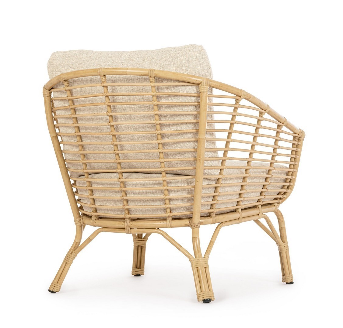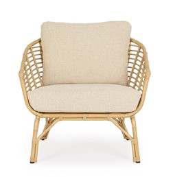 Fotel MABEL to zaproszenie do relaksu w zgodzie z naturą. Wykonany z naturalnych materiałów, zachwyca rustykalnym wyglądem i przyjemną formą. Drewniany stelaż w połączeniu z miękkim siedziskiem zapewnia komfortowy wypoczynek. Prosty, a zarazem przytulny – idealnie odnajdzie się w ogrodach w stylu etno, vintage czy boho. W połączeniu ze stolikiem MABEL tworzy harmonijny duet sprzyjający wypoczynkowi.