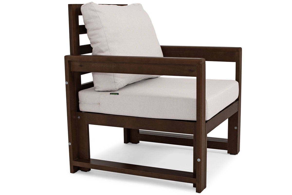 Nowoczesny design fotela łączy brązowy i szary kolor, co tworzy stylowy i uniwersalny wygląd, pasujący do różnych aranżacji ogrodowych. Ergonomiczny kształt i wygodne siedzisko zapewniają maksymalny komfort podczas odpoczynku na świeżym powietrzu.