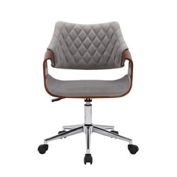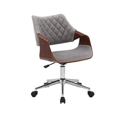 Fotel biurowy Colt orzech to elegancki model z podłokietnikami, który idealnie sprawdzi się w biurze lub pracy prywatnej. Fotel biurowy osadzony jest na jednej nodze zakończonej krzyżem - to chromowane elementy stalowe i plastikowe. Fotel biurowy Colt to połączenie giętej sklejki w kolorze orzech z naturalnymi odcieniami oraz tapicerki w postaci aksamitnej tkaniny, która jest miękka i przyjemna w dotyku. Dostępna w kolorze szarym aksamitna tkanina nie tylko efektownie wygląda, ale jest również łatwa w czyszczeniu. Estetykę fotela podkreśla ozdobny punkt widoczny na delikatnie wyprofilowanym oparciu.