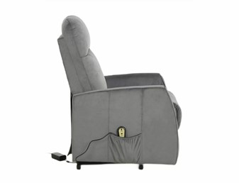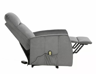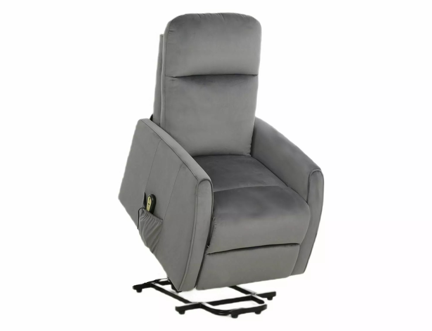 Rozkładany fotel tapicerowany miękką tkaniną aksamitną w eleganckim szarym kolorze to połączenie komfortu i nowoczesnej technologii. Wyposażony w elektryczny mechanizm rozkładania, fotel umożliwia łatwe przejście z pozycji siedzącej do leżącej. Dodatkowa funkcja pionizacji ułatwia wstawanie, co sprawia, że fotel jest idealnym wyborem dla osób o ograniczonej mobilności. Metalowy stelaż w czarnym matowym wykończeniu gwarantuje stabilność i trwałość. Ten fotel świetnie sprawdzi się w nowoczesnych wnętrzach, oferując wygodę oraz stylowy wygląd.