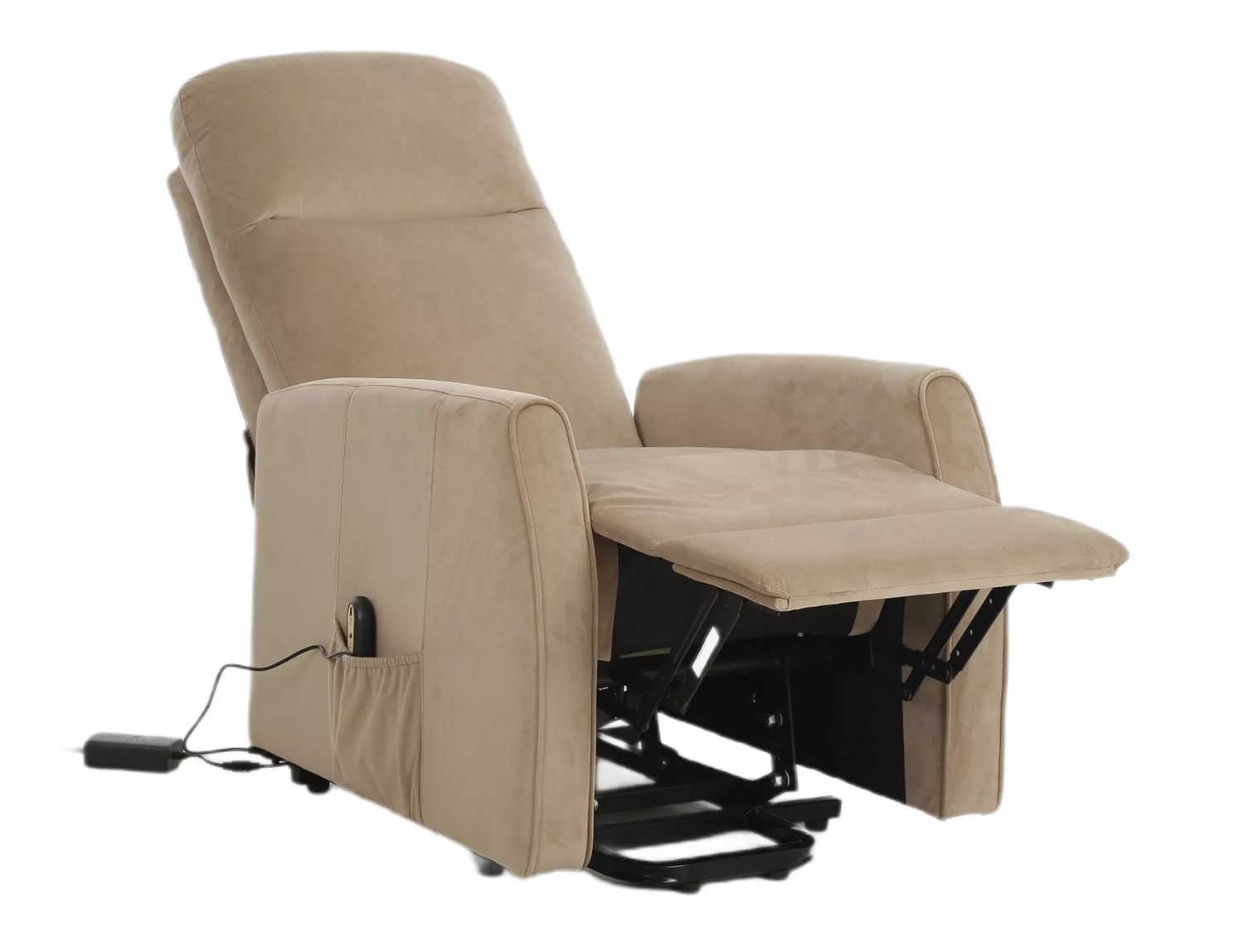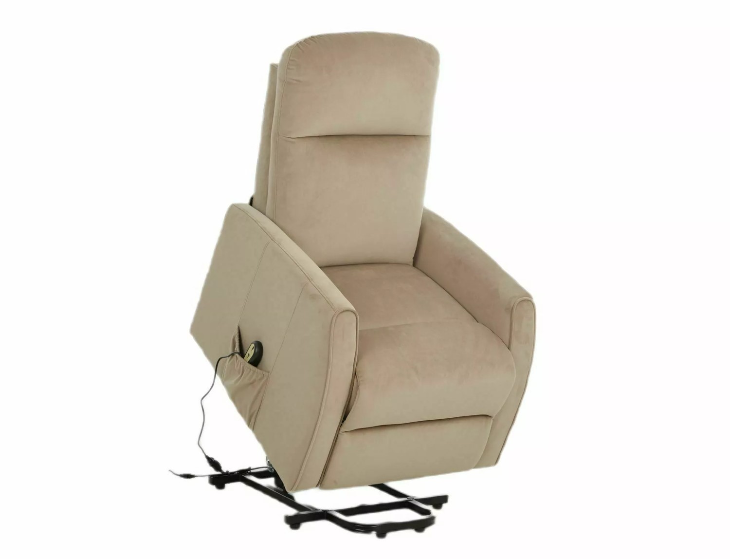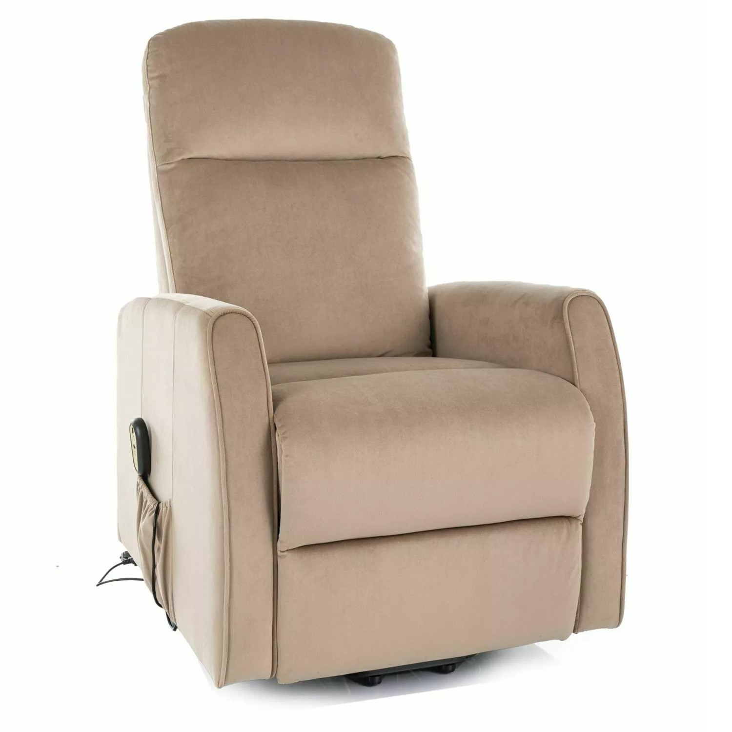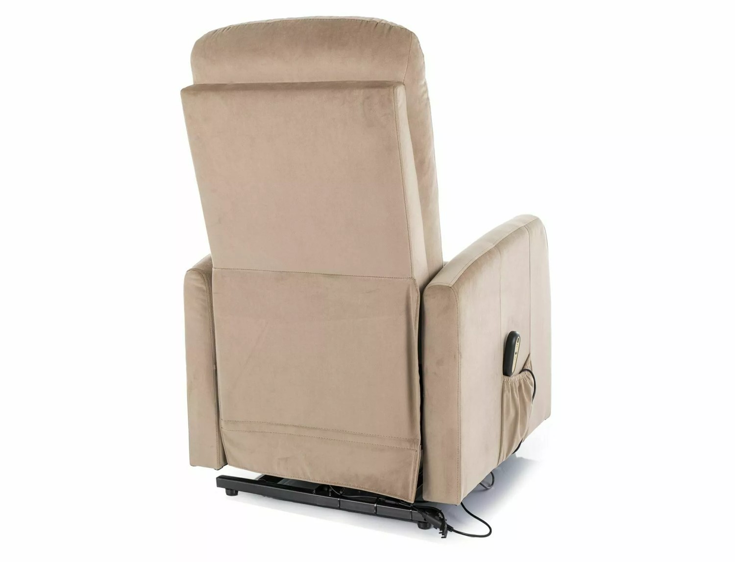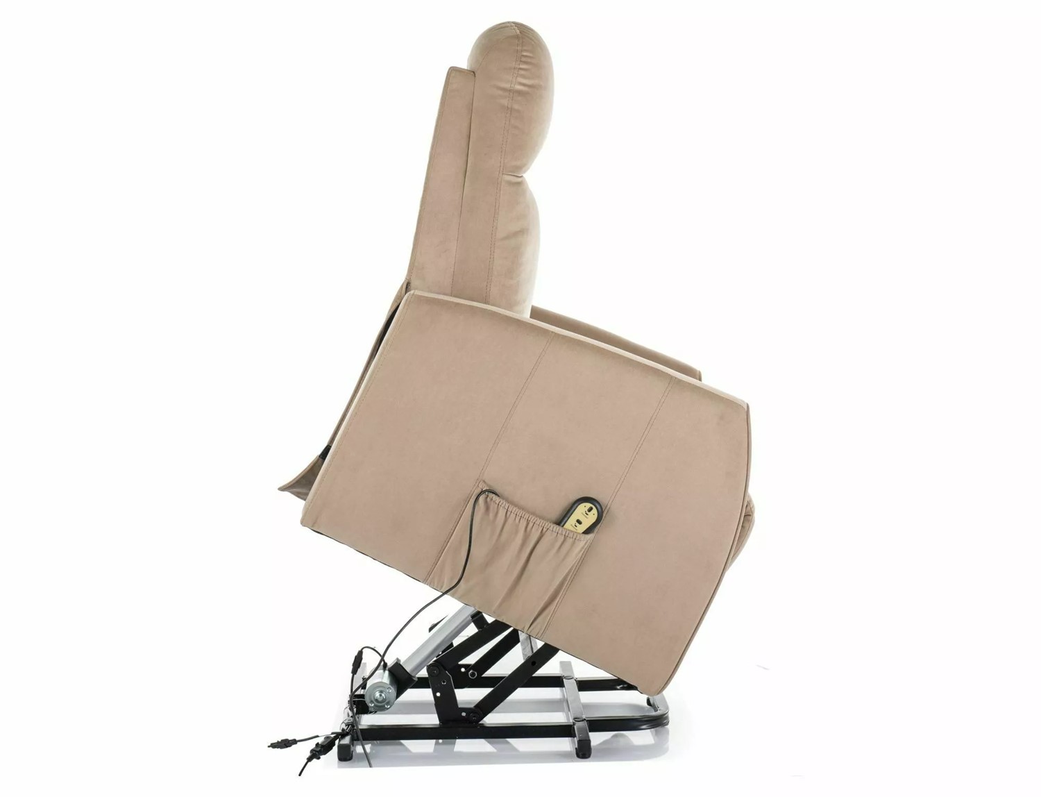 Rozkładany fotel tapicerowany miękką tkaniną aksamitną w eleganckim beżowym kolorze to połączenie komfortu i nowoczesnej technologii. Wyposażony w elektryczny mechanizm rozkładania, fotel umożliwia łatwe przejście z pozycji siedzącej do leżącej. Dodatkowa funkcja pionizacji ułatwia wstawanie, co sprawia, że fotel jest idealnym wyborem dla osób o ograniczonej mobilności. Metalowy stelaż w czarnym matowym wykończeniu gwarantuje stabilność i trwałość. Ten fotel świetnie sprawdzi się w nowoczesnych wnętrzach, oferując wygodę oraz stylowy wygląd.