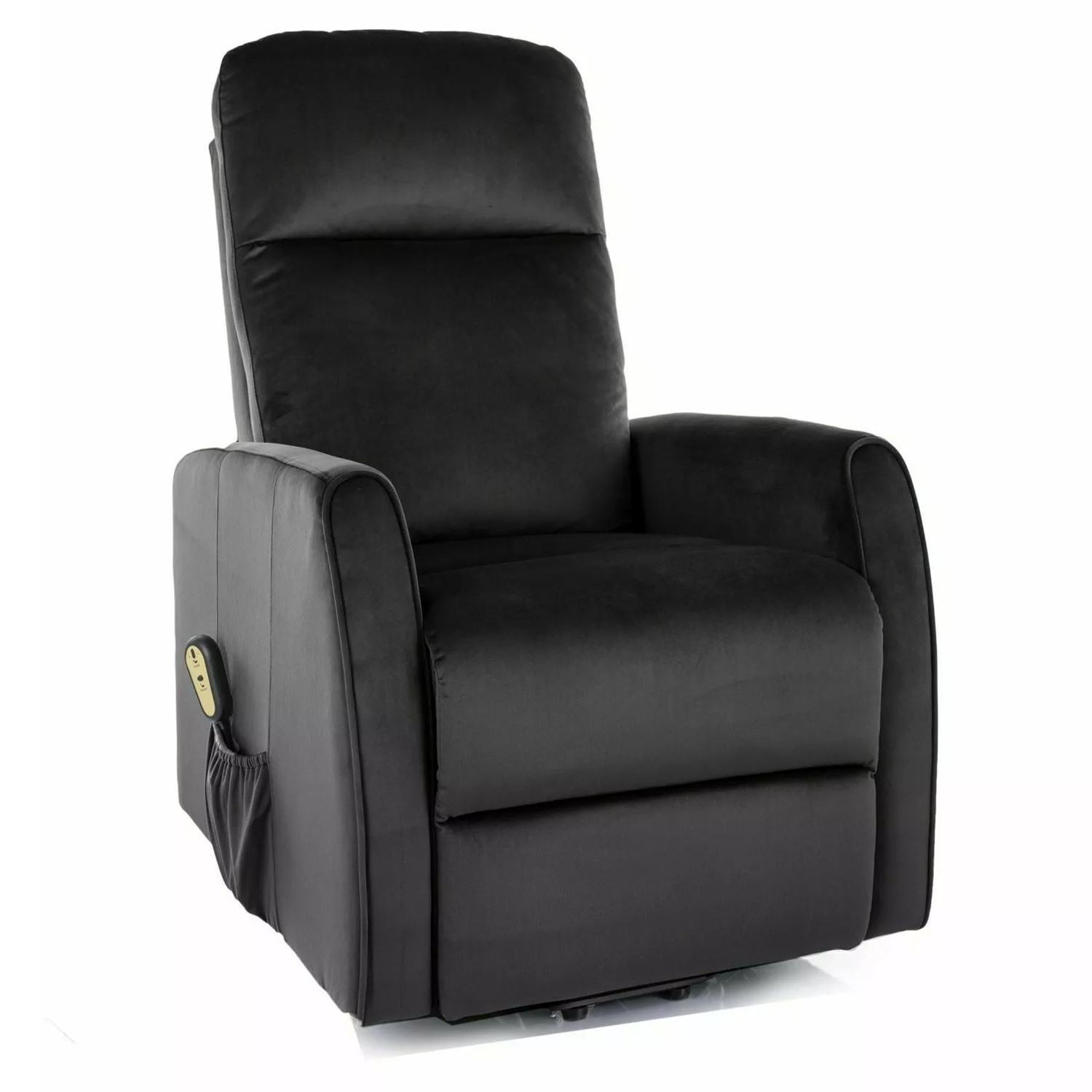 Rozkładany fotel tapicerowany miękką tkaniną aksamitną w eleganckim czarnym kolorze to połączenie komfortu i nowoczesnej technologii. Wyposażony w elektryczny mechanizm rozkładania, fotel umożliwia łatwe przejście z pozycji siedzącej do leżącej. Dodatkowa funkcja pionizacji ułatwia wstawanie, co sprawia, że fotel jest idealnym wyborem dla osób o ograniczonej mobilności. Metalowy stelaż w czarnym matowym wykończeniu gwarantuje stabilność i trwałość. Ten fotel świetnie sprawdzi się w nowoczesnych wnętrzach, oferując wygodę oraz stylowy wygląd.