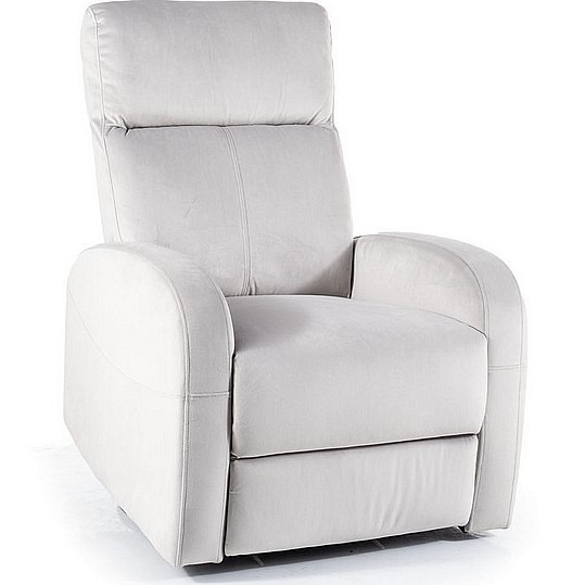 Fotel Olimp to stylowy i funkcjonalny mebel do sypialni. Charakteryzuje go duży i wygodny siedzisko, oraz wytrzymały aksamit w jasno szarym kolorze. Model ten posiada dodtakową funkcję bujania. Ten nietuzinkowy fotel Olimp idelanie sprawdzi się w salonie, dając chwile odprężenia po ciężkim dniu. Będzie to idealny dodatek do salonnu bądź sypialni.