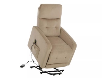 Fotel rozkładany z tapicerką wykonaną z miękkiego aksamitu Bluvel w eleganckim beżowym odcieniu to połączenie stylu i komfortu. Solidny metalowy stelaż w czarnym kolorze zapewnia trwałość oraz nowoczesny wygląd. Dzięki elektrycznemu mechanizmowi rozkładania fotel oferuje możliwość płynnego przejścia do pozycji leżącej, a funkcja pionizacji ułatwia wstawanie. Idealny wybór dla osób ceniących wygodę, elegancję i funkcjonalność w codziennym użytkowaniu.