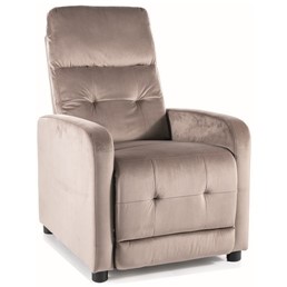 Rozkładany fotel to połączenie elegancji, wygody i funkcjonalności, idealne do wielu wnętrz. Tapicerka wykonana jest z wysokiej jakości tkaniny Velvet Bluvel o delikatnej fakturze, w ciepłym odcieniu ciemnego beżu (kod koloru: 40). Ta trwała tkanina nie tylko nadaje fotelowi przytulny wygląd, ale także jest łatwa w utrzymaniu czystości, co sprawia, że fotel jest praktycznym wyborem do codziennego użytku.