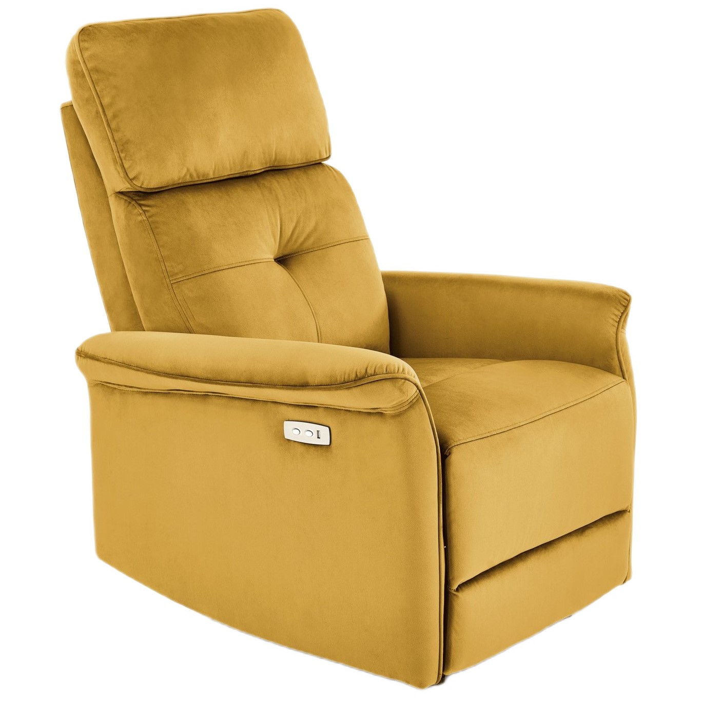 Fotel SEMIR to połączenie wyjątkowego komfortu z nowoczesną technologią. Dzięki funkcji elektrycznego rozkładania, użytkownik może łatwo dostosować pozycję fotela do swoich potrzeb, zapewniając sobie idealne wsparcie i relaks. Dodatkowe gniazdo USB umożliwia ładowanie urządzeń elektronicznych bez konieczności opuszczania komfortowej strefy fotela. Kolor musztardowy nadaje fotelowi SEMIR elegancki i przytulny wygląd, który doskonale komponuje się z różnymi stylami wnętrz. Wyjątkowy design fotela zachęca do wypoczynku, a jednocześnie pasuje do wielu aranżacji przestrzeni mieszkalnej. Fotel SEMIR to nie tylko element wyposażenia salonu czy pokoju dziennego, ale również centrum relaksu i rozrywki. Dzięki innowacyjnej funkcji elektrycznego rozkładania i gniazdu USB, zapewniającemu komfort użytkowania, ten fotel staje się niezastąpionym elementem w codziennym życiu.