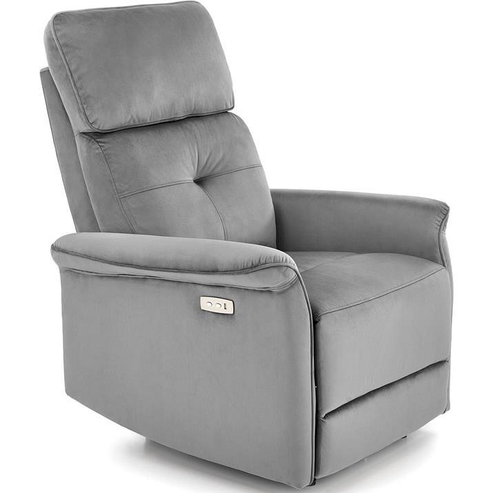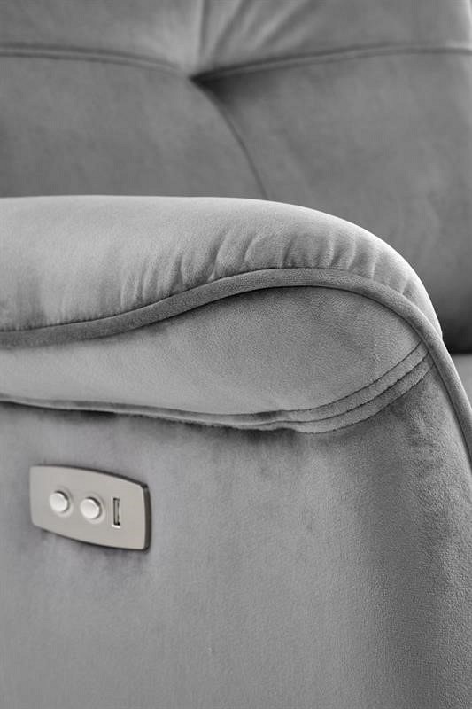 Rozkładany fotel SEMIR, pokryty wysokiej jakości aksamitną tkaniną, z powodzeniem zastępuje klasyczny fotel w salonie. Aksamitna tkanina zapewnia wysoki komfort, zapewniając ciepło i miękkość. Fotel SEMIR optycznie rozjaśnia wnętrze w tym miejscu, a dzięki aksamitnej tapicerce staje się meblościanką. Fotel zapewnia łatwość użytkowania i komfortowy wypoczynek dzięki elektronicznej funkcji odchylania oparcia. Dodatkowo wyposażony jest w złącze USB, dzięki czemu nie musisz wstawać z fotela wypoczynkowego np. do salonu. Naładować telefon