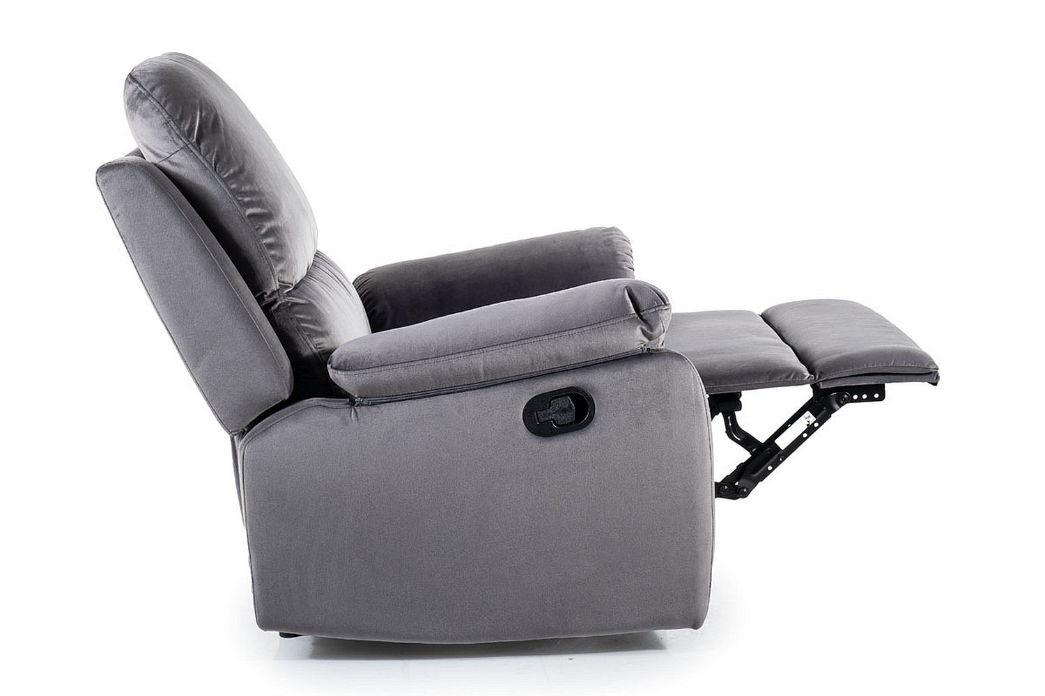 Fotel rozkładany Spencer 1 to komfortowy i stylowy mebel, który doskonale sprawdzi się w salonie, sypialni czy pokoju dziennym. Fotel posiada funkcję rozkładania, dzięki czemu można go łatwo przekształcić w wygodne łóżko. Pokryty jest elegancką szarym welurem, który nadaje mu eleganckiego i nowoczesnego wyglądu. Boczne podłokietniki oraz miękkie poduszki zapewniają dodatkowy komfort użytkowania. Jest także łatwy w utrzymaniu czystości, dzięki odporności na plamy i zabrudzenia. To doskonały wybór dla osób ceniących sobie wygodę i estetykę.