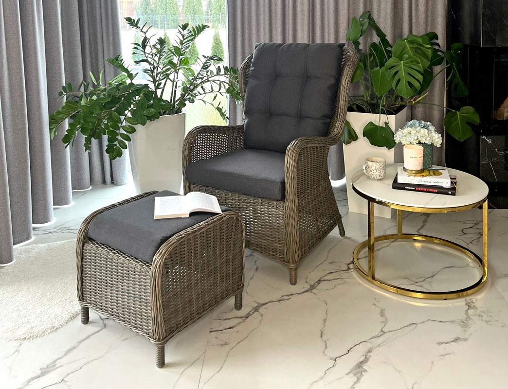 Ekskluzywny fotel Sonata z podnóżkiem w szarym kolorze to idealne połączenie luksusu, komfortu i nowoczesnego designu. Fotel oferuje głębokie, miękkie siedzisko oraz ergonomicznie zaprojektowany kształt, który zapewnia maksymalną wygodę podczas siedzenia. Podnóżek dodatkowo umożliwia relaks i wsparcie dla nóg, co czyni ten zestaw idealnym miejscem do czytania, oglądania telewizji czy po prostu odpoczynku. Obicie fotela wykonane z łatwego w utrzymaniu materiału w połączeniu z solidną konstrukcją gwarantuje trwałość i stabilność. Neutralny, szary kolor oraz elegancka forma pozwalają na łatwe wkomponowanie fotela w różne style wnętrzarskie, czyniąc go stylowym dodatkiem do każdego pomieszczenia.