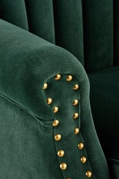 Lubisz stylistykę nowoczesną i awangardową? W Twoim domu salon i sypialnia to pomieszczenia, w których ma panować stylistyka glamour, więc szukasz mebli, które są w stanie spełnić te oczekiwania? W takim razie mamy dla Ciebie doskonałą propozycję – fotel TITAN w kolorze ciemnozielonym pochodzący z kolekcji mebli producenta Halmar. Doskonale pasuje do wnętrz, które urządzone są w stylu eleganckim i glamour, ponieważ ma zrobienia w kolorze złotym, które doskonale komponują się z butelkową zielenią. Mebel ten został wykonany przez profesjonalistów z najwyższa starannością i dbałością o każdy szczegół. Można więc mieć pewność, że będzie służył przez długie lata i na pewno nie zawiedzie oczekiwań. Zapoznaj się z jego zaletami i przekonaj się czemu warto zdecydować się na jego kupienie: