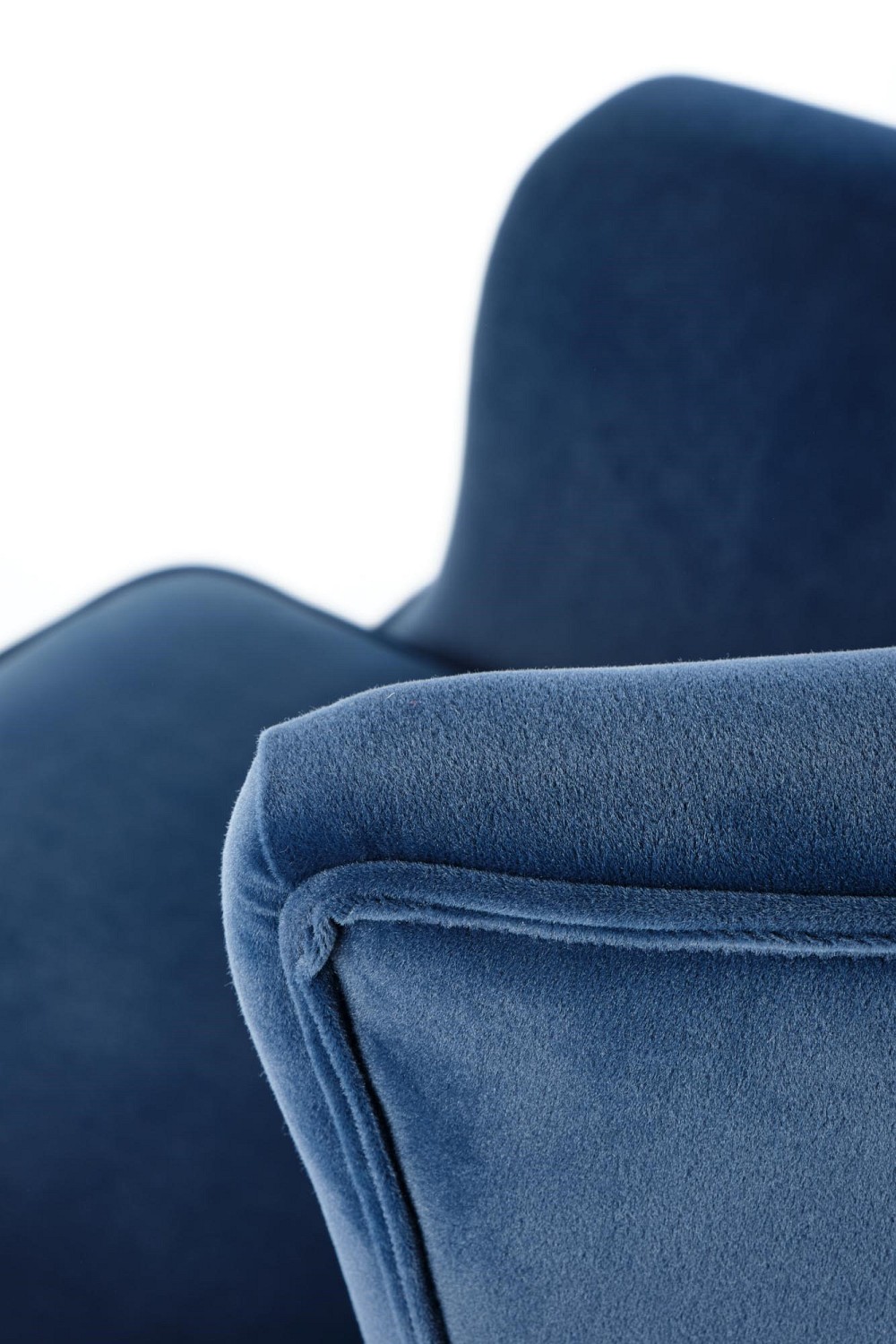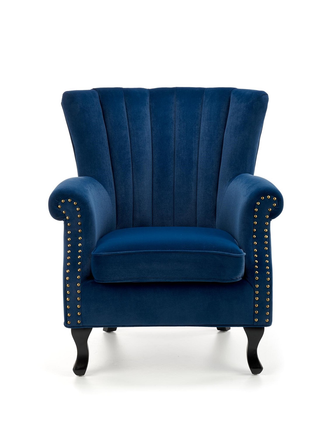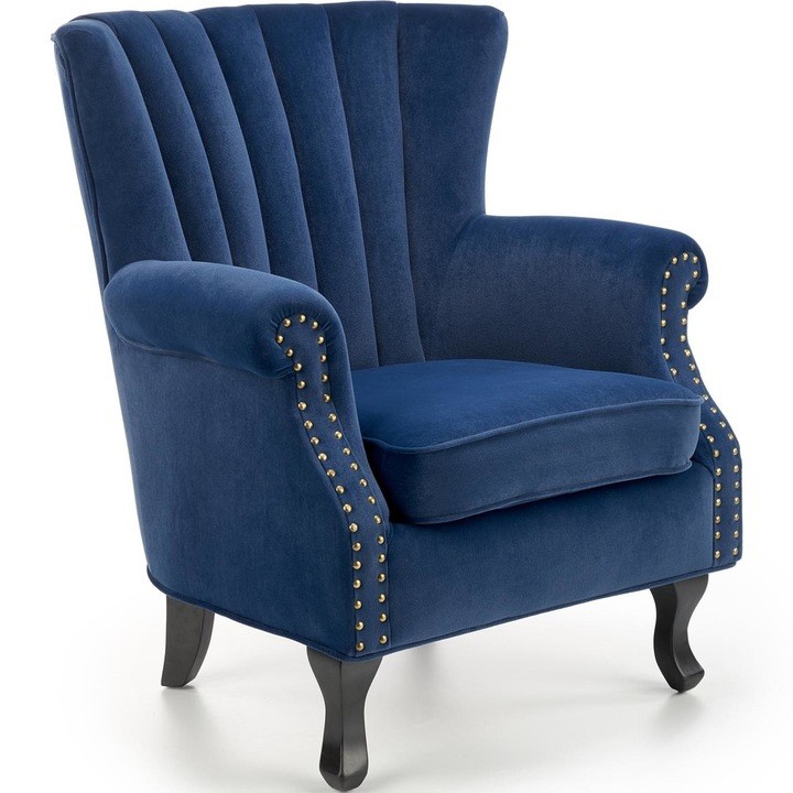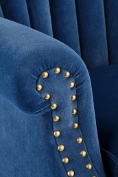 Poszukujesz wygodnego mebla, dzięki któremu zadbasz o swoją wygodę i komfort podczas wypoczynku po powrocie z pracy do domu? Chcesz urządzić salon w stylu nowoczesnym i glamour lub minimalistycznym? Pragniesz urządzić to pomieszczenie w taki sposób, by panowała w nim przyjazna atmosfera, a jednocześnie był oryginalny? W takim razie doskonałym wyborem będzie fotel TITAN w kolorze granatowym. Tapicerka w odcieniach granatu doskonale prezentuje się w połączeniu z czarnymi drewnianymi nogami. Całość ma charakter nowoczesny i elegancki. Powierzchnia siedziska nie jest gładka, a ozdobiona szerokimi pasami. Dodatkowo po bokach widoczne są złote zdobienia. Warto wiedzieć, że ten mebel ma również inne zalety, z którymi warto się zapoznać przed zakupem: