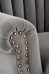 · Aksamitna tkanina w kolorze popielatym sprawia, że do wnętrz wkrada się nieco stylu glamour. Jest to więc mebel, który może spełnić oczekiwania każdego, nawet najbardziej wymagających osób.