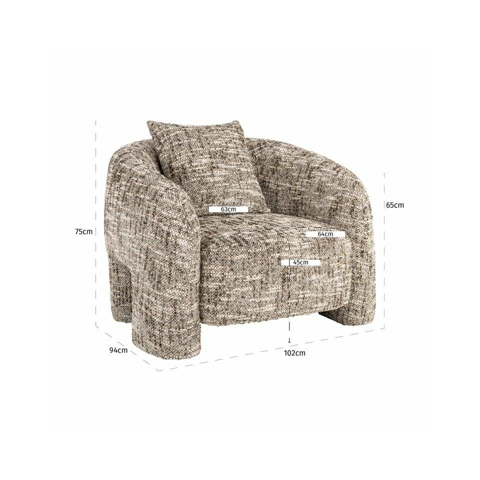 Fotel TUSCANY to elegancki mebel, który harmonijnie łączy nowoczesny design z wysokim komfortem użytkowania. Jego obicie wykonane z miękkiej tkaniny o geometrycznym wzorze nadaje całości wyjątkowego charakteru, a subtelna kolorystyka sprawia, że fotel doskonale wpisuje się w różne aranżacje wnętrz. Szerokie siedzisko oraz głębokie oparcie zapewniają pełen relaks, a dodatkowa poduszka zwiększa wygodę podczas odpoczynku. Konstrukcja wykonana z pianki PU, sklejki i drewna sosnowego gwarantuje stabilność i długowieczność mebla.