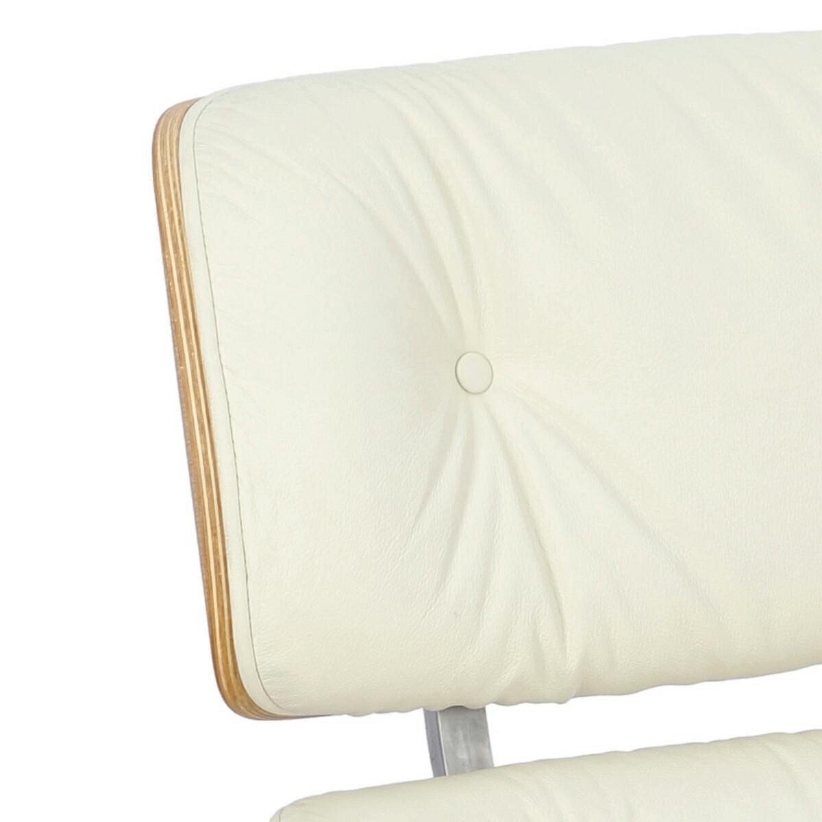 Fotel składa się z trzech sklejkowych muszelek połączonych ze sobą metalowymi elementami. Siedzisko i oparcie tapicerowane są miękką, skórą naturalną. Obrotowa baza wykonana z aluminium występuje w dwóch wersjach. Pierwsza ma boki i spód nóg lakierowane na czarno a wierzch polerowany (ta wersja najczęściej jest spotykana z ciemną skórą) . Druga wersja bazy jest w całości polerowana i występuje najczęściej z białą skórą. Podnóżek dostępny jest oddzielnie w ofercie naszego sklepu.