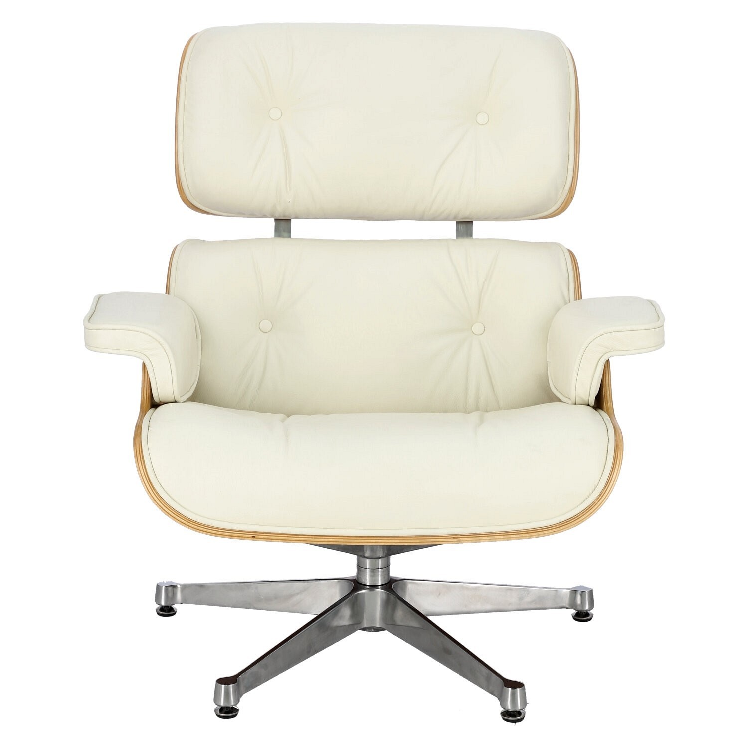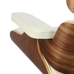 Fotel składa się z trzech sklejkowych muszelek połączonych ze sobą metalowymi elementami. Siedzisko i oparcie tapicerowane są miękką, skórą naturalną. Obrotowa baza wykonana z aluminium występuje w dwóch wersjach. Pierwsza ma boki i spód nóg lakierowane na czarno a wierzch polerowany (ta wersja najczęściej jest spotykana z ciemną skórą) . Druga wersja bazy jest w całości polerowana i występuje najczęściej z białą skórą. Podnóżek dostępny jest oddzielnie w ofercie naszego sklepu.