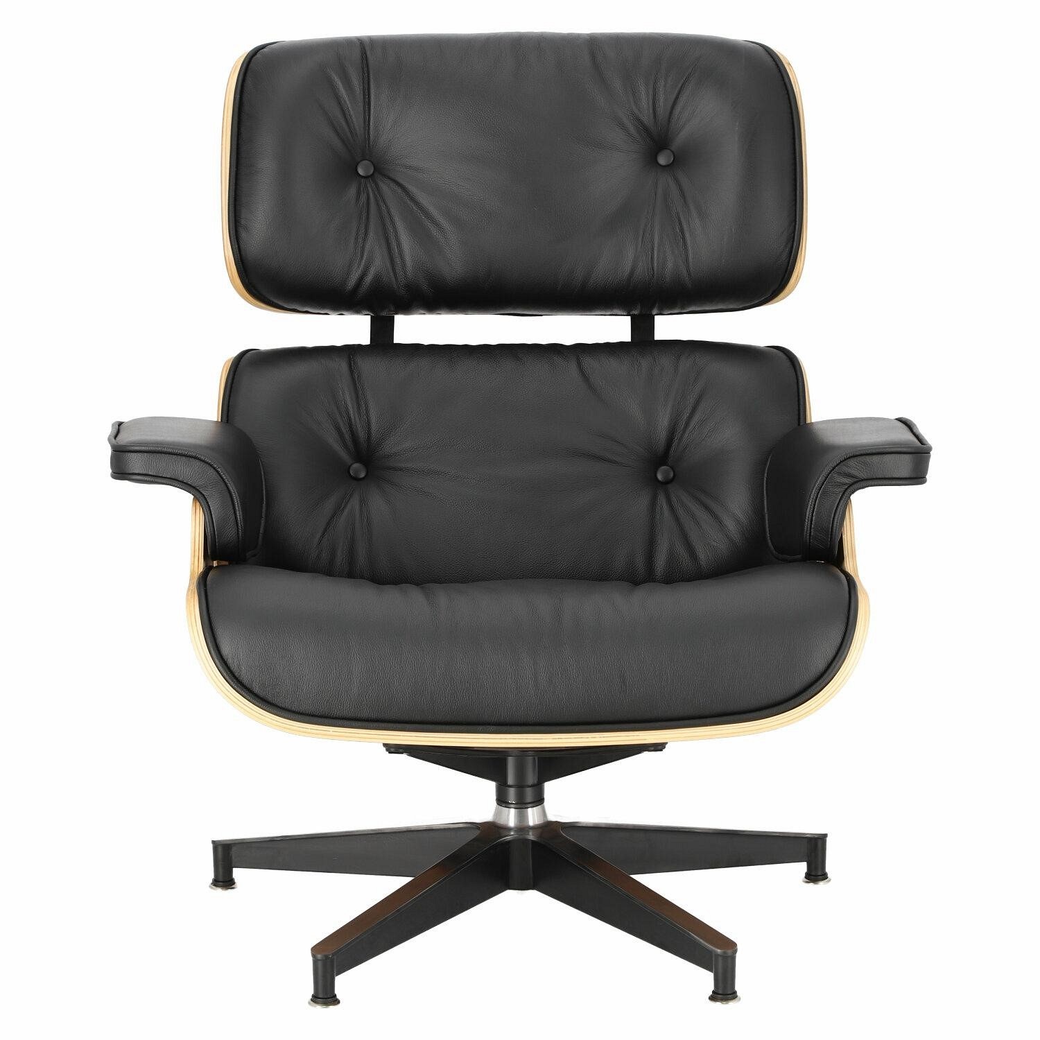 Fotel składa się z trzech sklejkowych muszelek połączonych ze sobą metalowymi elementami. Siedzisko i oparcie tapicerowane są miękką, skórą naturalną. Obrotowa baza wykonana z aluminium występuje w dwóch wersjach. Pierwsza ma boki i spód nóg lakierowane na czarno a wierzch polerowany (ta wersja najczęściej jest spotykana z ciemną skórą) . Druga wersja bazy jest w całości polerowana i występuje najczęściej z białą skórą. Podnóżek dostępny jest oddzielnie w ofercie naszego sklepu.