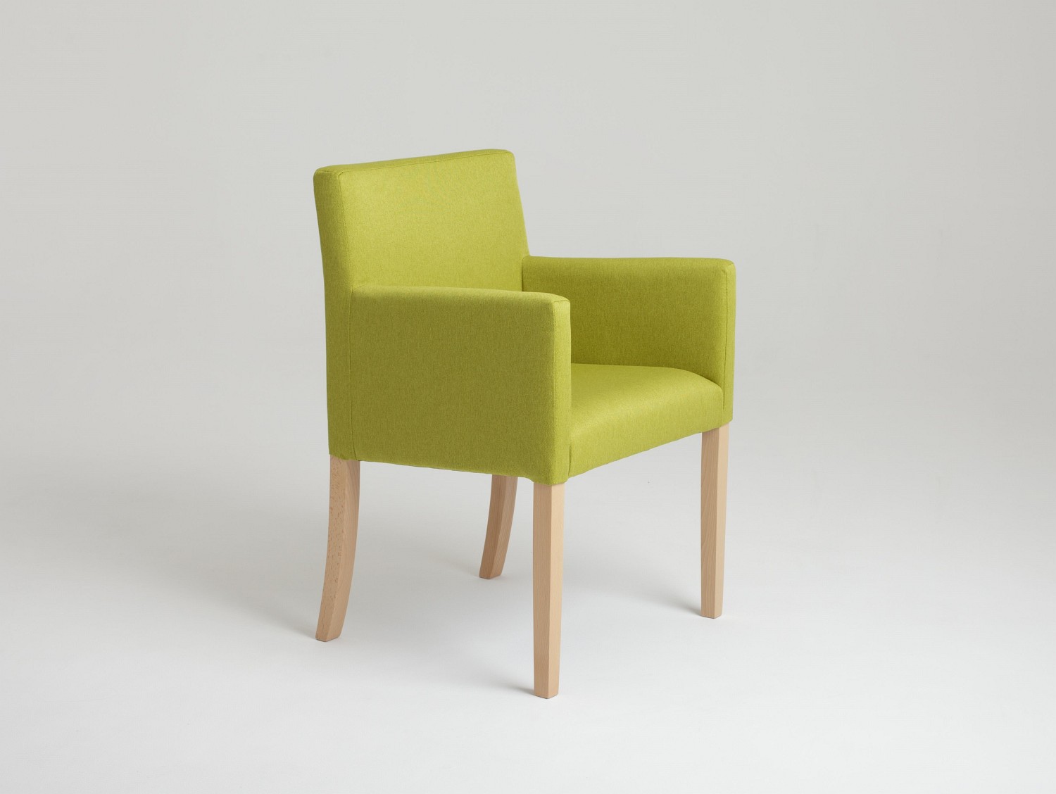 Ten piękny, tapicerowany fotel spełni oczekiwania każdego klienta. Podstawa tego artykułu została wykonana z litego drewna w kolorze jasnej dębiny, która idealnie komponuje się z jasnozieloną tapicerką. Mebel ma prostą, perfekcyjnie wykonaną konstrukcję, co niewątpliwie dodaje mu gustownego i eleganckiego wyglądu. Doceń urok tego mebla!