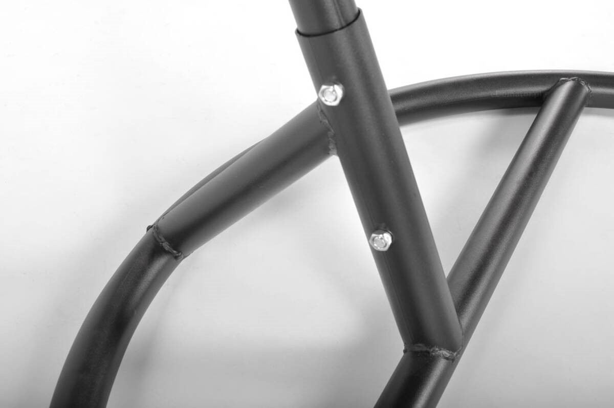 Czarny stelaż wykonany z trwałego materiału gwarantuje stabilność i bezpieczeństwo podczas korzystania z fotela. Jego elegancki, minimalistyczny design doskonale komponuje się z różnymi stylami wnętrzarskimi.