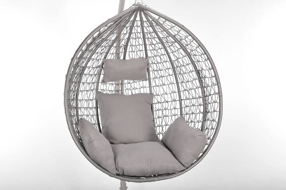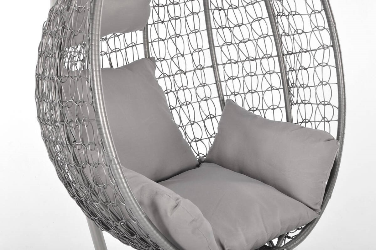 Odkryj doskonałe połączenie relaksu i stylu dzięki fotelowi wiszącemu BAHAMA. Jego szary stelaż zapewnia solidność, podczas gdy zestaw poduszek zapewnia niezrównany komfort.