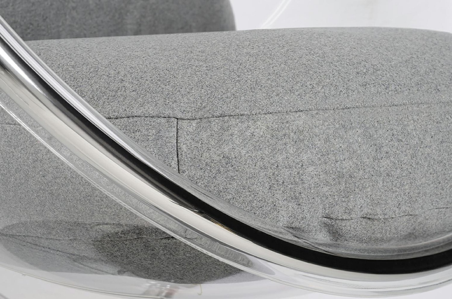 Fotel wiszący Bubble zapewnia komfort i relaks w Twoim domu. Idealne miejsce na popołudniową drzemkę lub poranną kawę. Jest relaksujący, a delikatne kołysanie ukoi Twoje nerwy. Korpus krzesła wykonany jest z wysokiej jakości przezroczystego akrylu. Wewnątrz znajdują się dwie poduszki wypełnione wełną kaszmirową. Całość zawieszona jest na wytrzymałych łańcuszkach mocowanych do sufitu za pomocą specjalnych kotew. Zastosowanie tych materiałów nadaje fotelowi elegancki i nowoczesny wygląd. Z pewnością będzie świetnym dodatkiem do wystroju Twojego wnętrza i doda stylu i charakteru całemu Twojemu domowi. Fotel bąbelkowy dostępny jest również w wersji z bąbelkowym stojakiem.