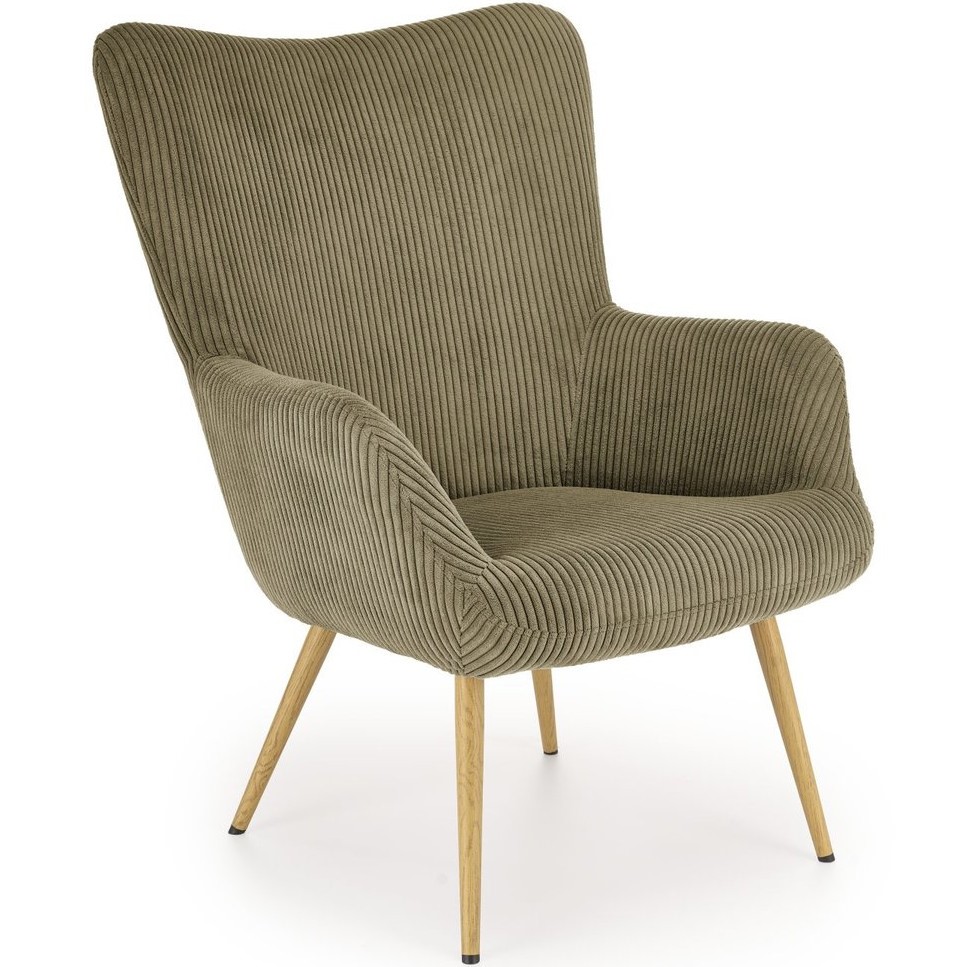 Oliwkowy kolor tapicerki nadaje fotelowi subtelności i jasności, tworząc atmosferę spokoju i przytulności w każdym pomieszczeniu. Jest to idealne miejsce do odpoczynku po długim dniu, zapewniając równocześnie stylowy akcent w aranżacji wnętrza.
