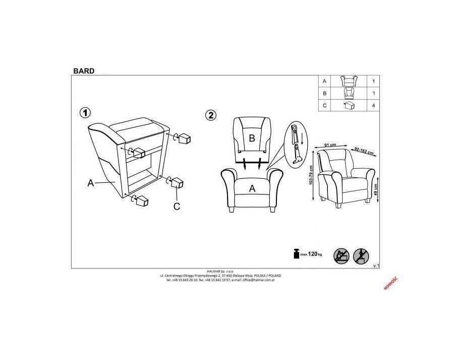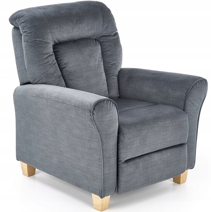 Fotel Bard może zostać wizytówką każdego salonu lub sypialni. Ten nietuzinkowy mebel sprawi, że z przyjemnością oddasz się w nim lekturze lub utniesz sobie drzemkę, dzięki systemowi rozkładania fotela. Wygodne siedzisko, szerokie oparcie i praktyczne podłokietniki obite są wysokogatunkową tkaniną w kolorze ciemno niebieskim. Ich wypełnienie zapewnia wysoki komfort użytkowania. Całość spoczywa na solidnych nóżkach zrobionych z drewna litowego.