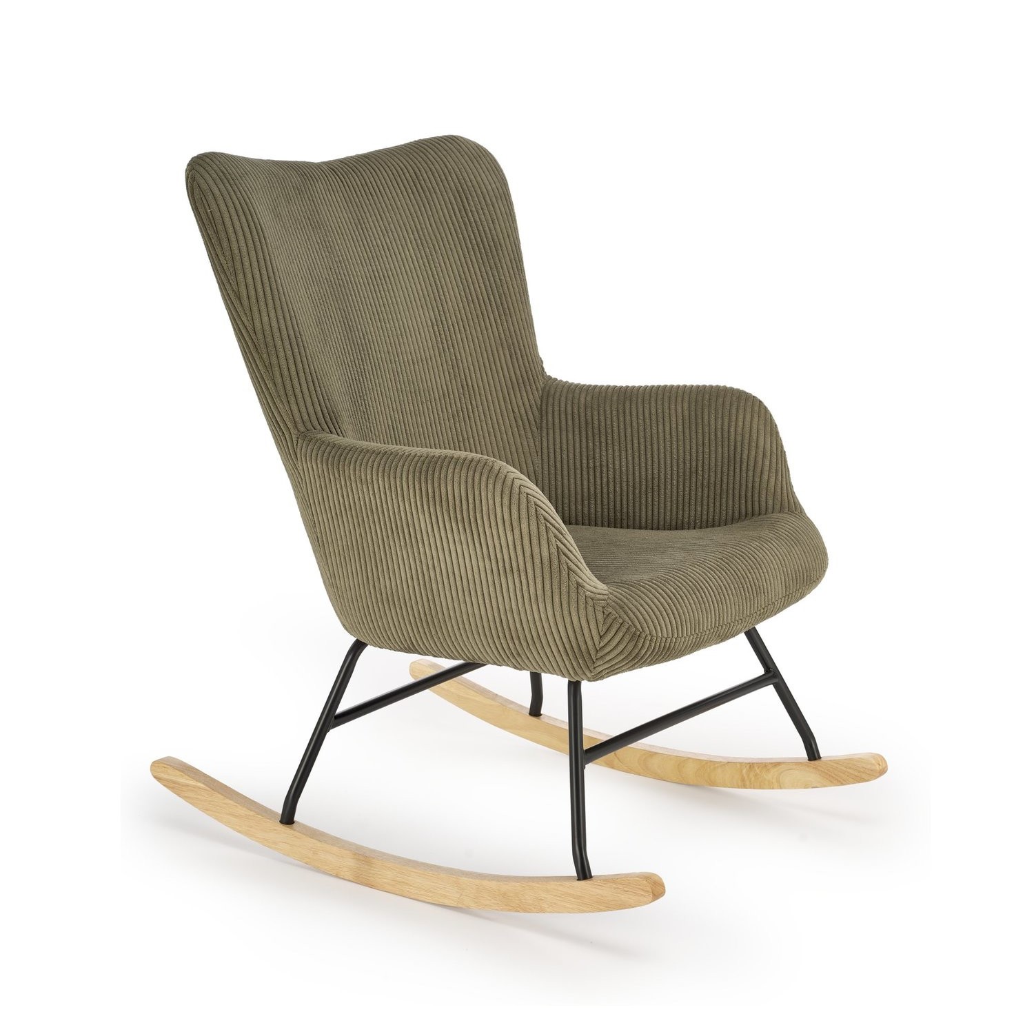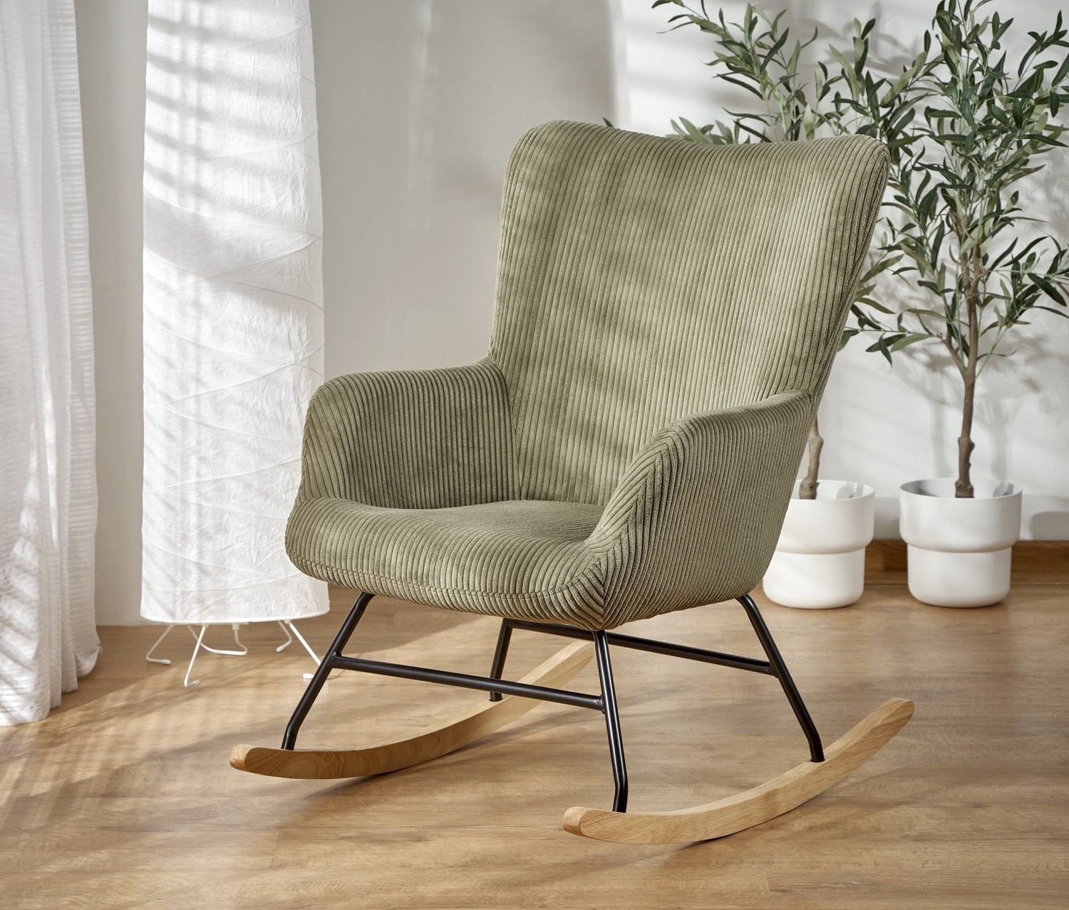 Prezentujemy fotel wypoczynkowy Belmiro, który nie tylko zdobi swoim eleganckim designem, ale także oferuje wyjątkową opcję kołyski, połączoną z przyjemnym komfortem siedzenia. Fotel ten, utrzymany w delikatnym kolorze oliwkowym, to nie tylko mebel, lecz prawdziwa strefa relaksu w Twoim wnętrzu.