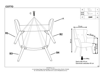 Fotel wypoczynkowy Cotto to jeden z najmodniejszych modeli obecnego sezonu. Co zadecydowało o tak wielkiej jego popularności? Z pewnością bardzo ciekawy styl, a przy tym wyjątkowa wygoda użytkowania. Fotel ten obszyto trwałą tapicerką wykonaną z tkaniny, natomiast jego podstawę stanowią cztery stabilne nogi wykonane z drewna litego kauczukowego w kolorze naturalnym. Cotto polecany jest do salonów, pokojów sypialnych, a także dziennych. Dostępny w czterech kolorach do wyboru: beżowym, niebieskim, ciemnym popielowym i jasnym popielowym.