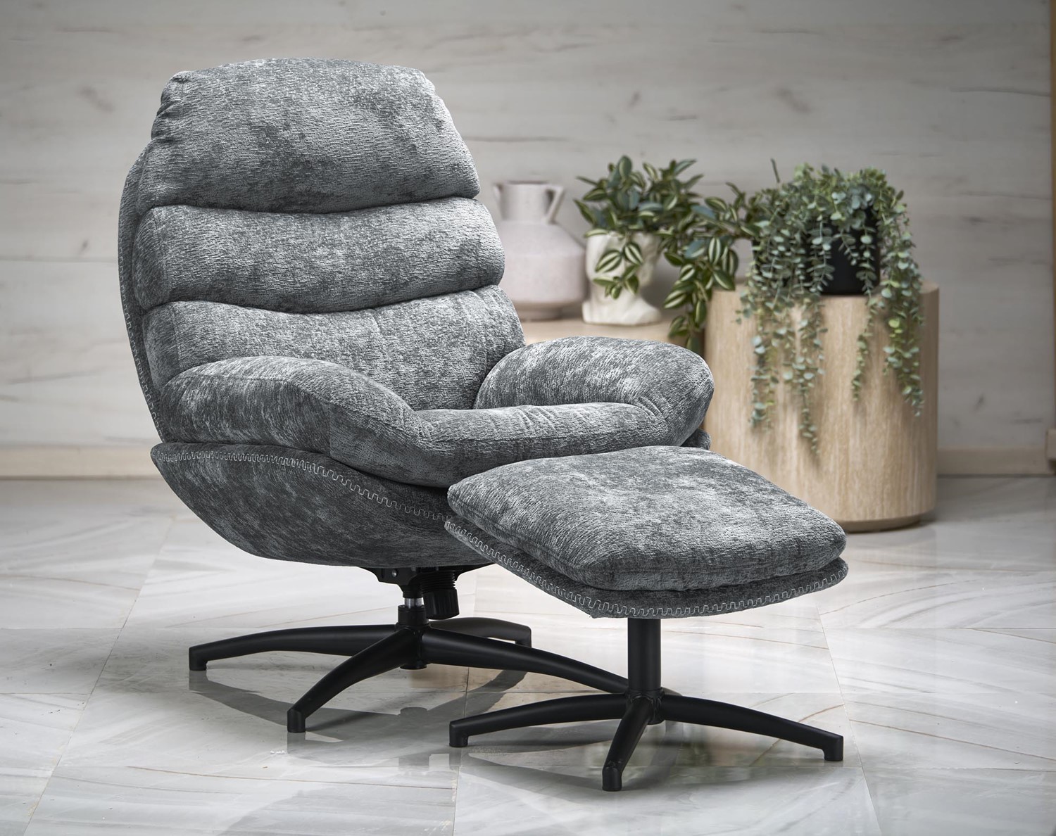 Zestaw z podnóżkiem pozwala na całkowite zrelaksowanie nóg, tworząc atmosferę relaksu. Podnóżek jest ergonomicznie dostosowany do siedziska, zapewniając kompleksowe wsparcie dla stóp i nóg.