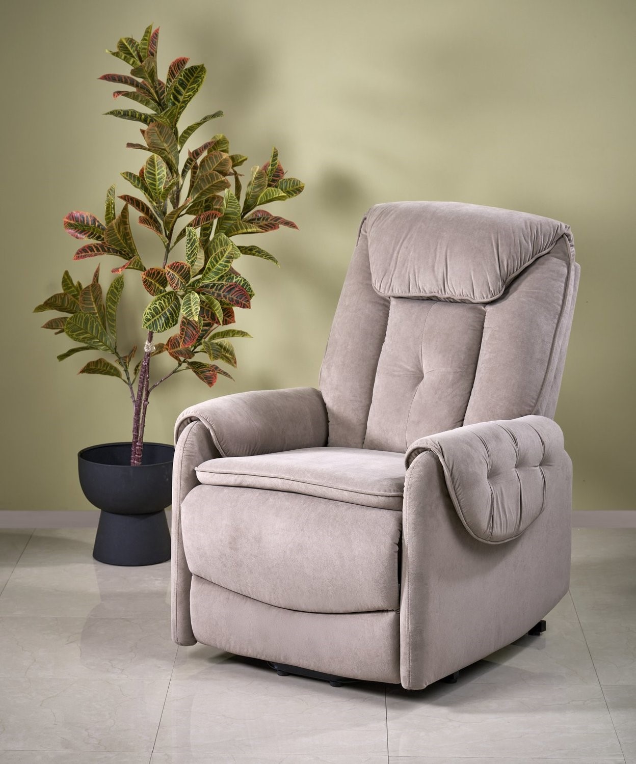 Fotel wypoczynkowy HORTON to elegancki i funkcjonalny mebel, który doskonale sprawdzi się w nowoczesnych wnętrzach. Jego ergonomiczna konstrukcja zapewnia wygodę i odpowiednie podparcie dla pleców, co czyni go idealnym do relaksu. Solidny stelaż gwarantuje trwałość i stabilność, dzięki czemu fotel posłuży przez wiele lat. Model HORTON wyposażony jest w funkcję rozkładania, umożliwiającą płynne przejście do pozycji leżącej. Dodatkowo funkcja pionizacji ułatwia wstawanie, co jest szczególnie przydatne dla osób starszych lub o ograniczonej mobilności. Kompaktowe wymiary sprawiają, że fotel zmieści się zarówno w przestronnych salonach, jak i mniejszych pomieszczeniach. Jego nowoczesny design i staranne wykończenie sprawiają, że staje się efektownym elementem wystroju wnętrza.